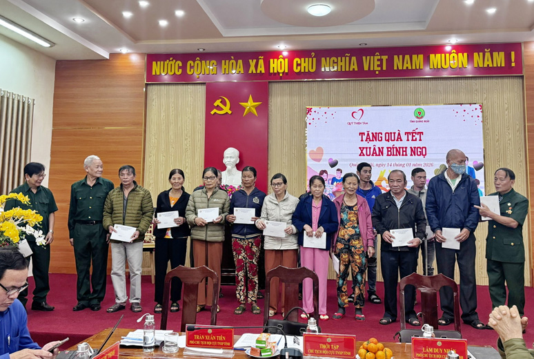 - Thay mặt Quỹ Thiện Tâm trao 30 phần quà Tết Bính Ngọ (trong tổng số 130 phần) cho hội viên nghèo (ảnh dưới). Số còn lại sẽ trao trực tiếp cho từng hội viên tại cơ sở.