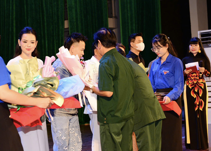 Tặng hoa cảm ơn đoàn nghệ thuật