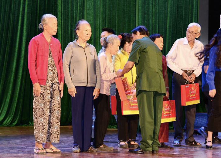 - Thay mặt Quỹ Thiện Tâm trao 30 phần quà Tết Bính Ngọ (trong tổng số 130 phần) cho hội viên nghèo (ảnh dưới). Số còn lại sẽ trao trực tiếp cho từng hội viên tại cơ sở.
