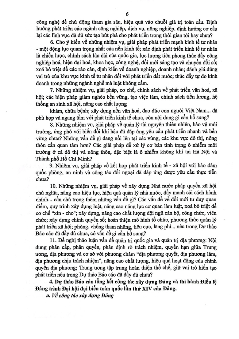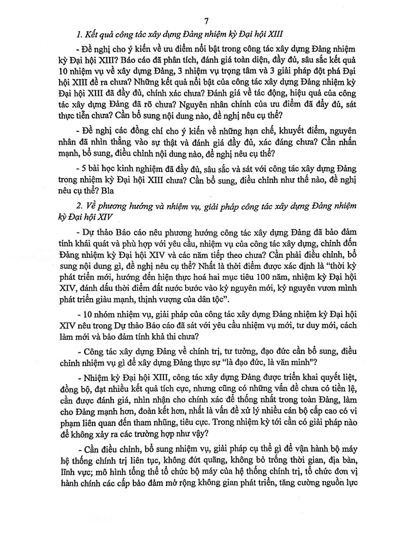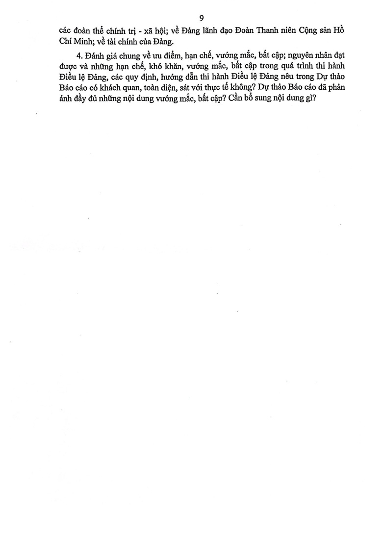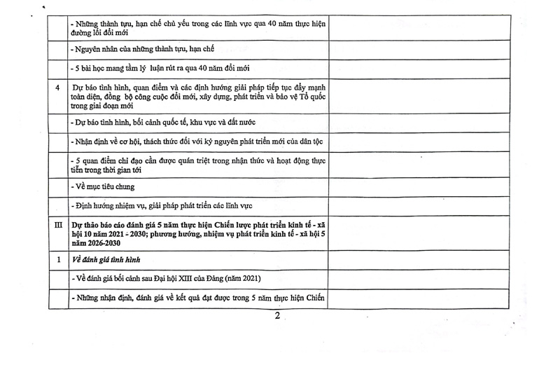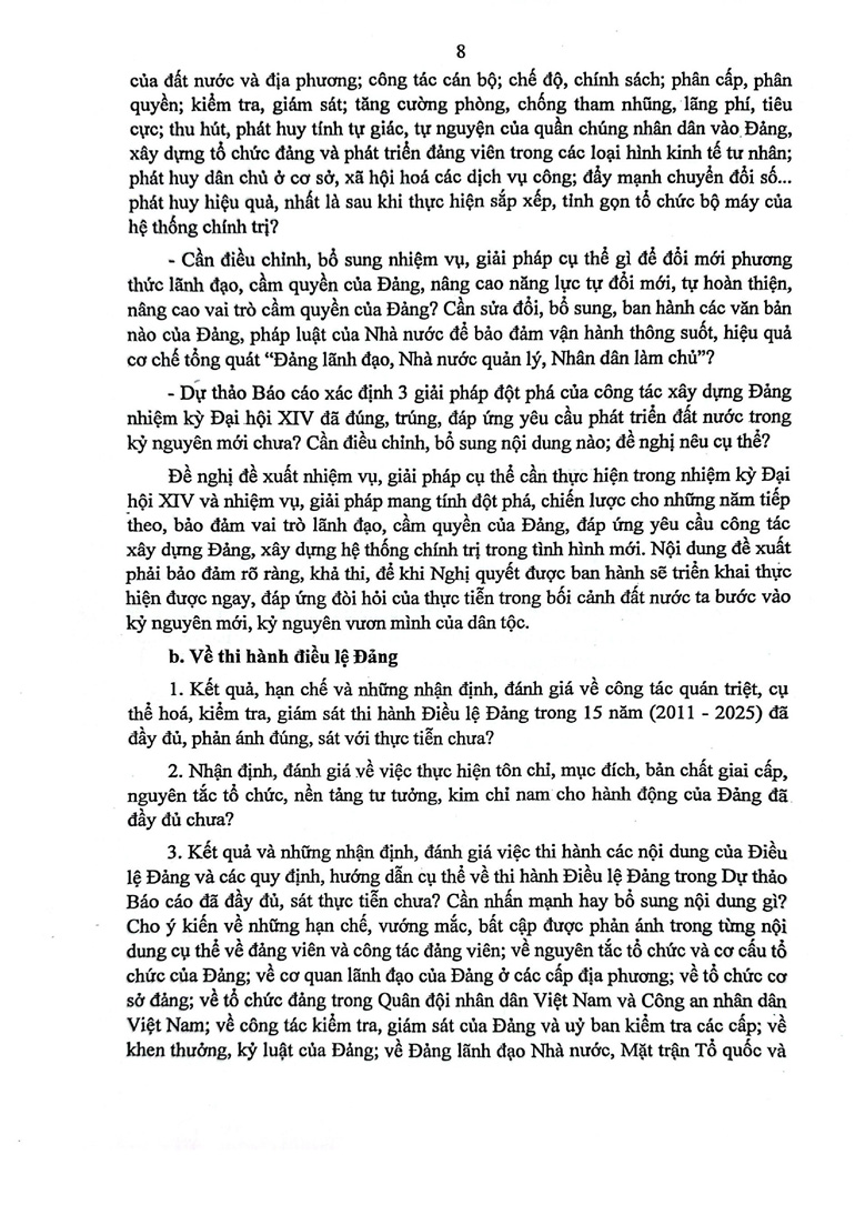 Hướng dẫn 18 tổ chức lấy ý kiến, tổng hợp ý kiến đóng góp của cán bộ, đảng viên và Nhân dân đối với dự thảo các văn kiện trình Đại hội đại biểu toàn quốc lần thứ XIV của Đảng