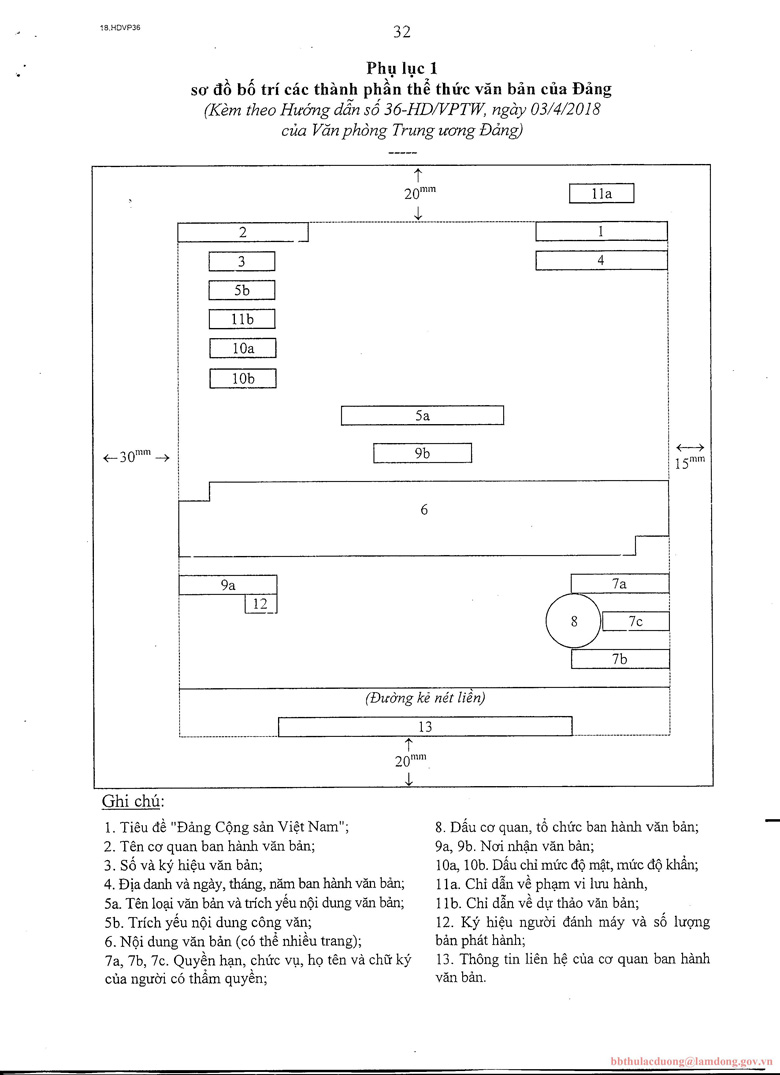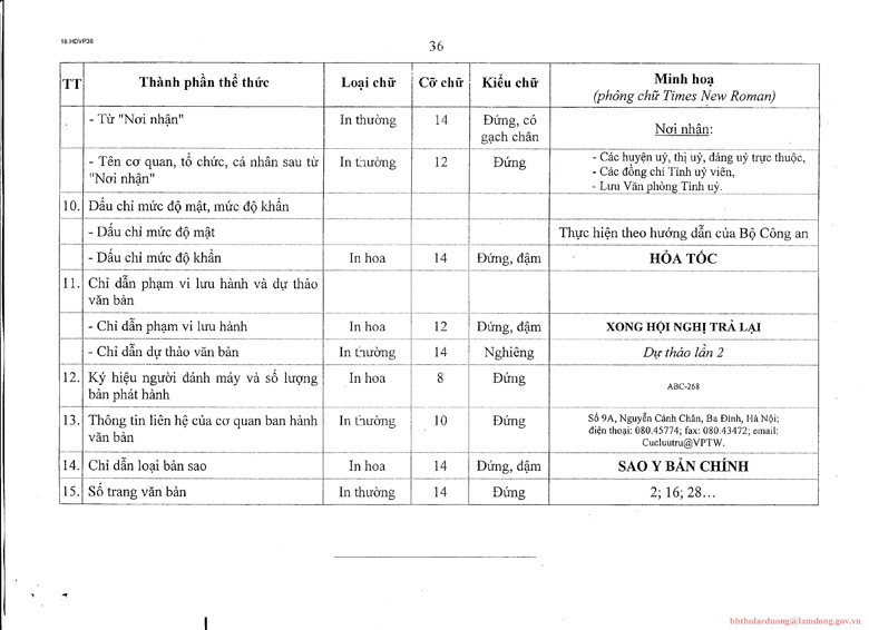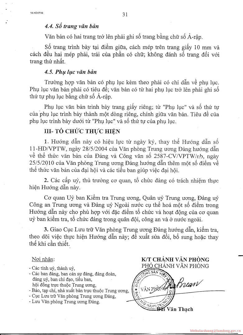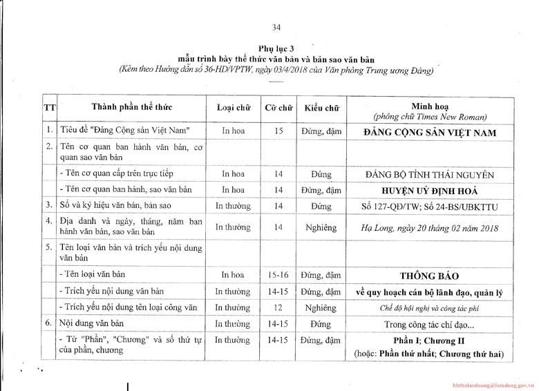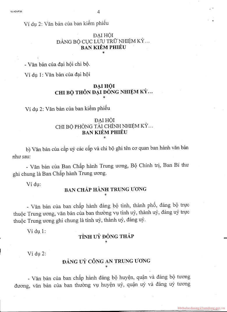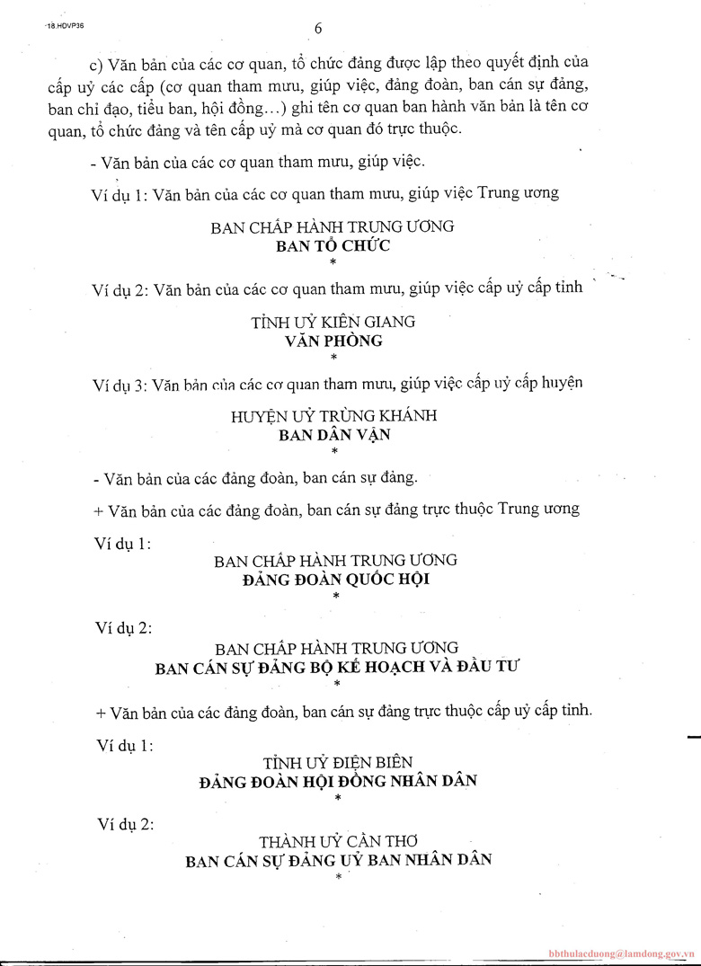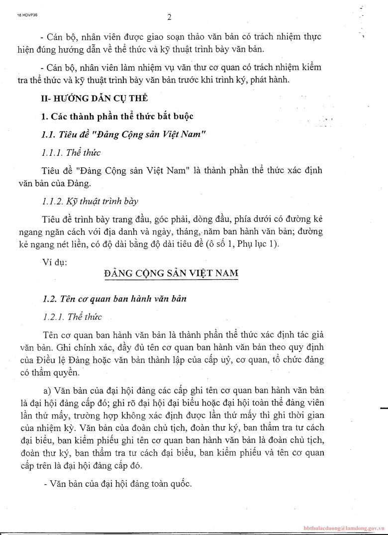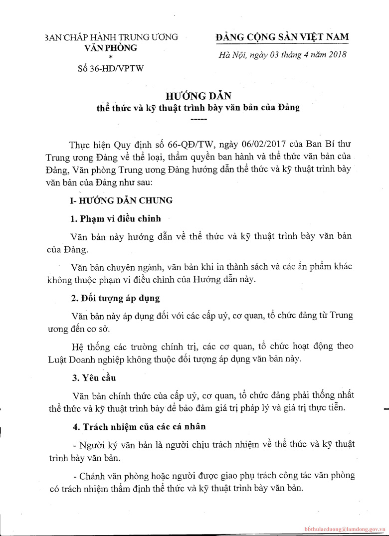 Hướng dẫn 36 về thể thức và kỹ thuật trình bày văn bản của Đảng