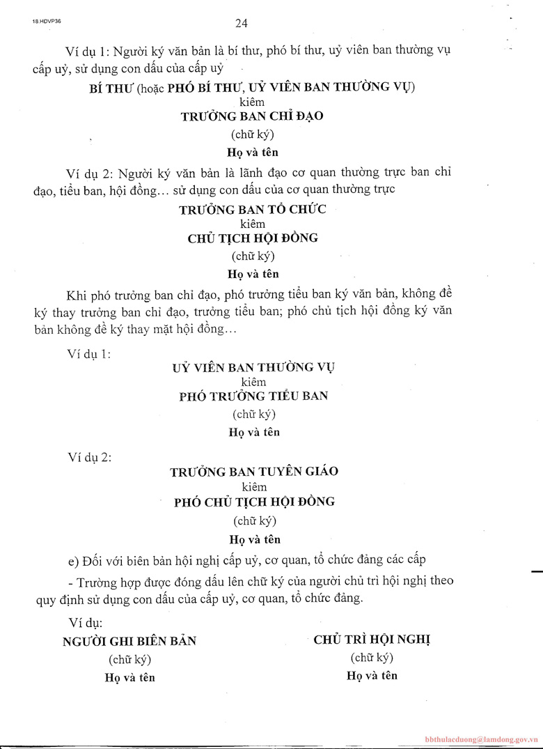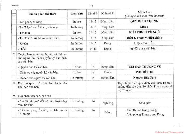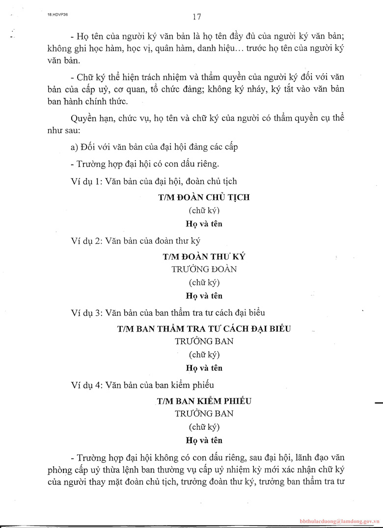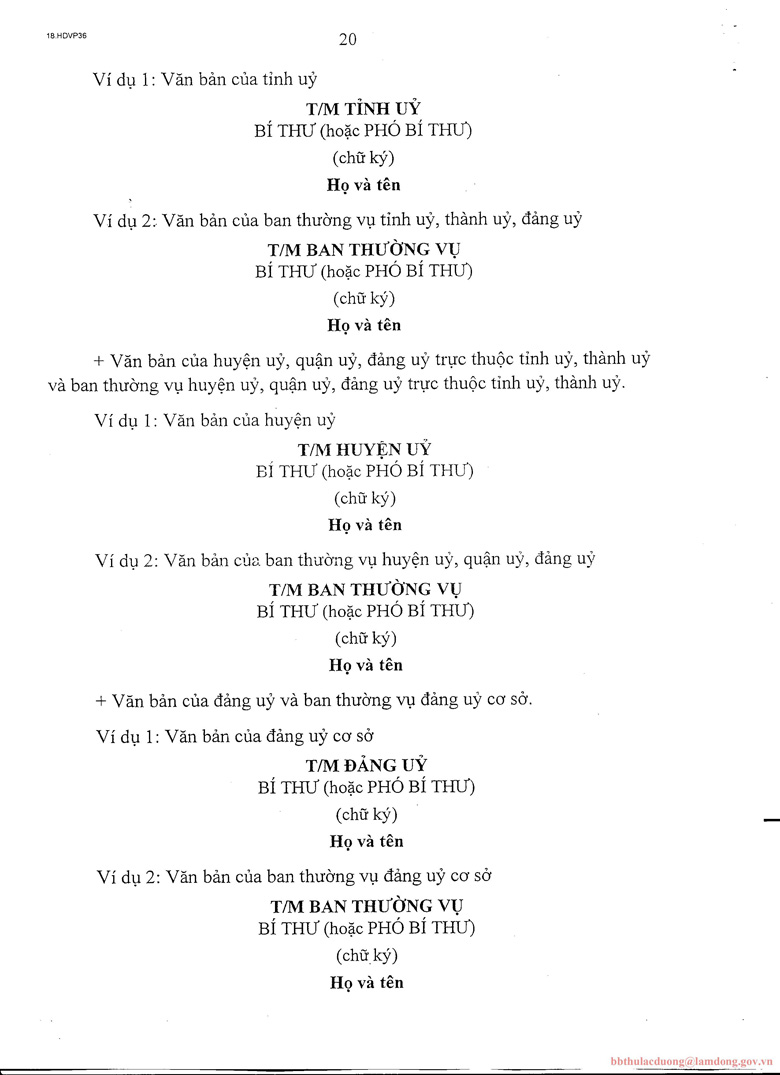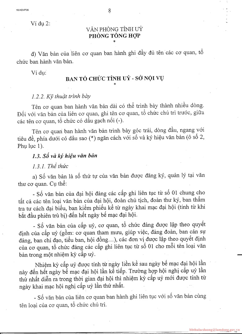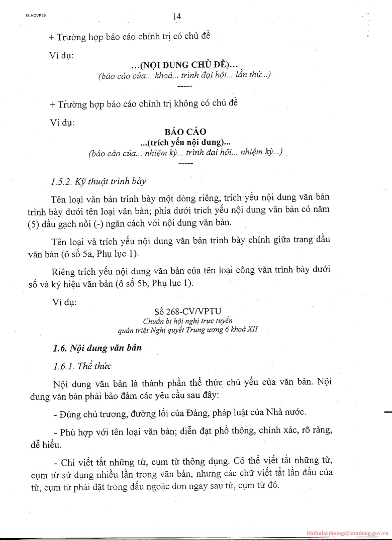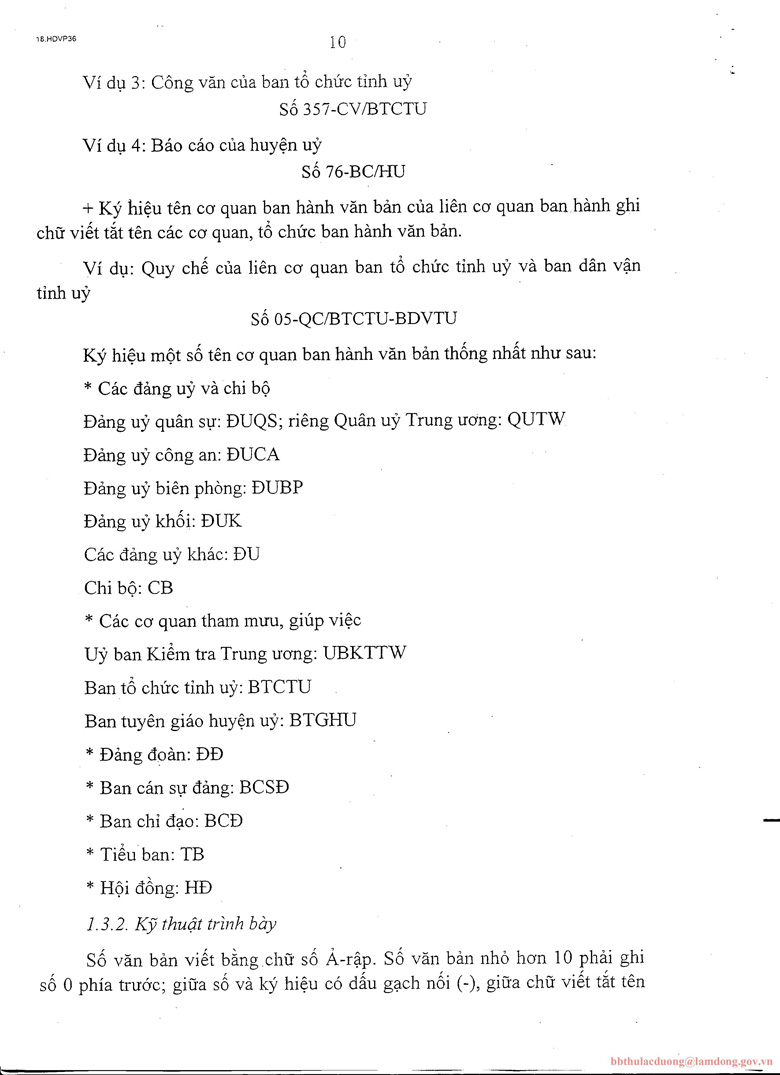 Hướng dẫn 36 về thể thức và kỹ thuật trình bày văn bản của Đảng