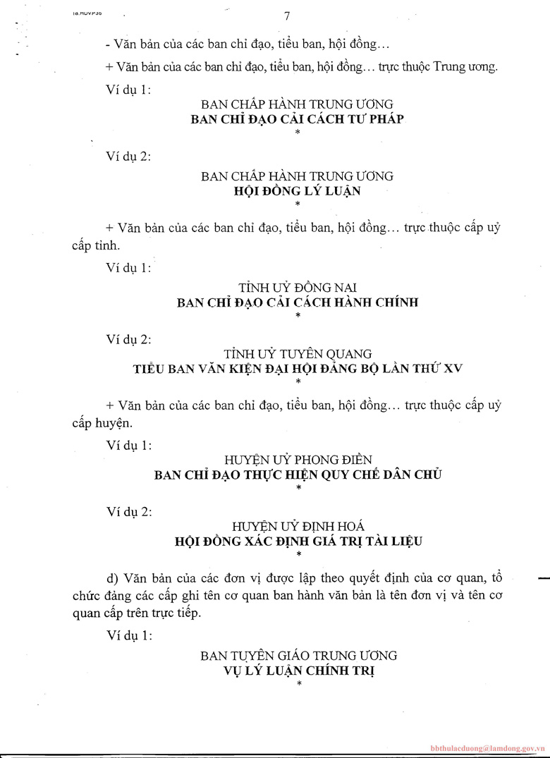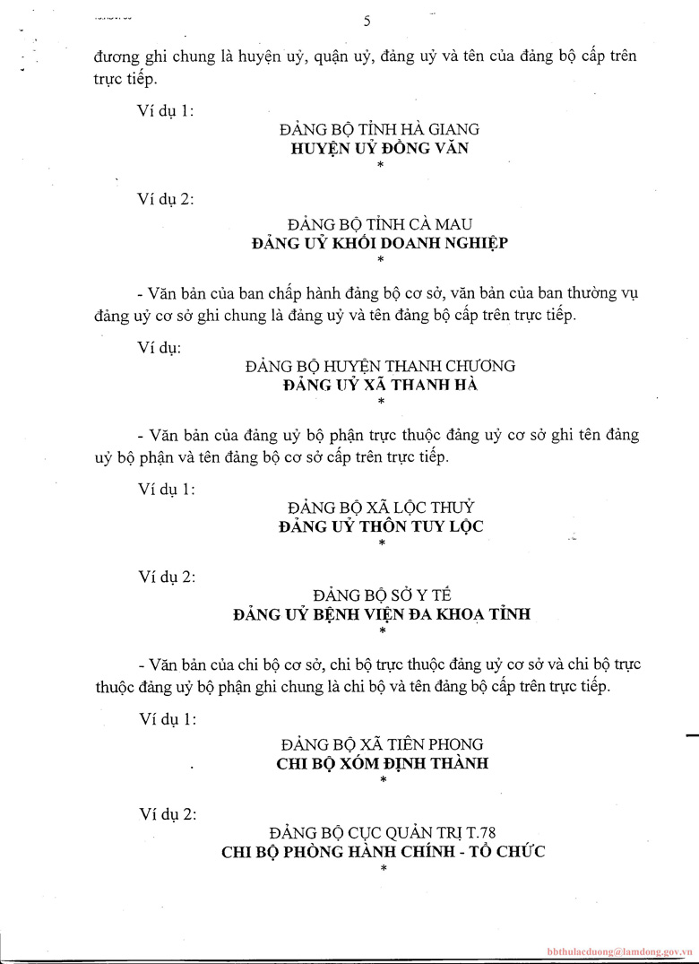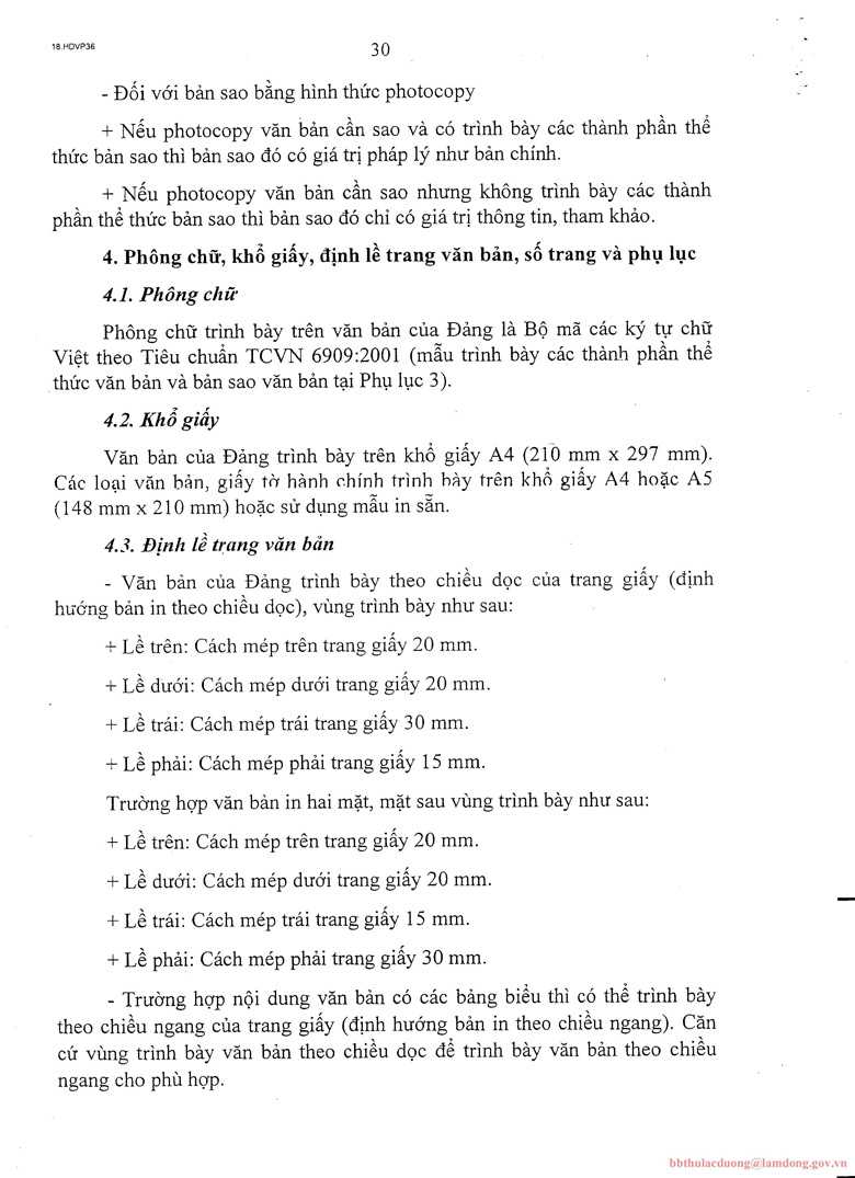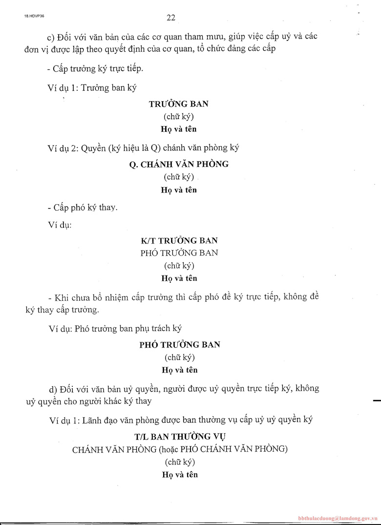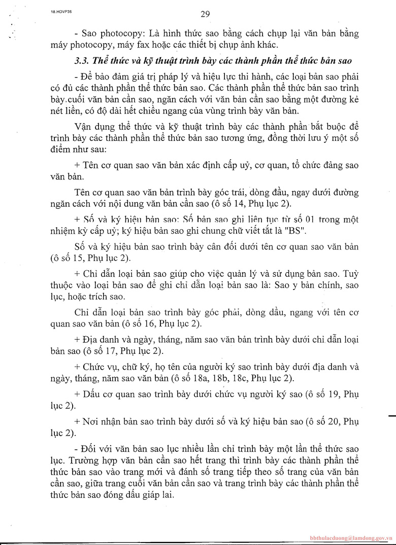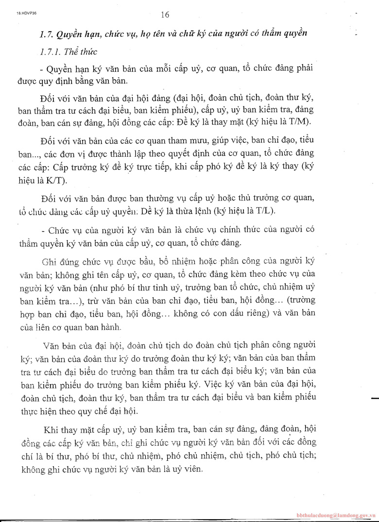 Hướng dẫn 36 về thể thức và kỹ thuật trình bày văn bản của Đảng
