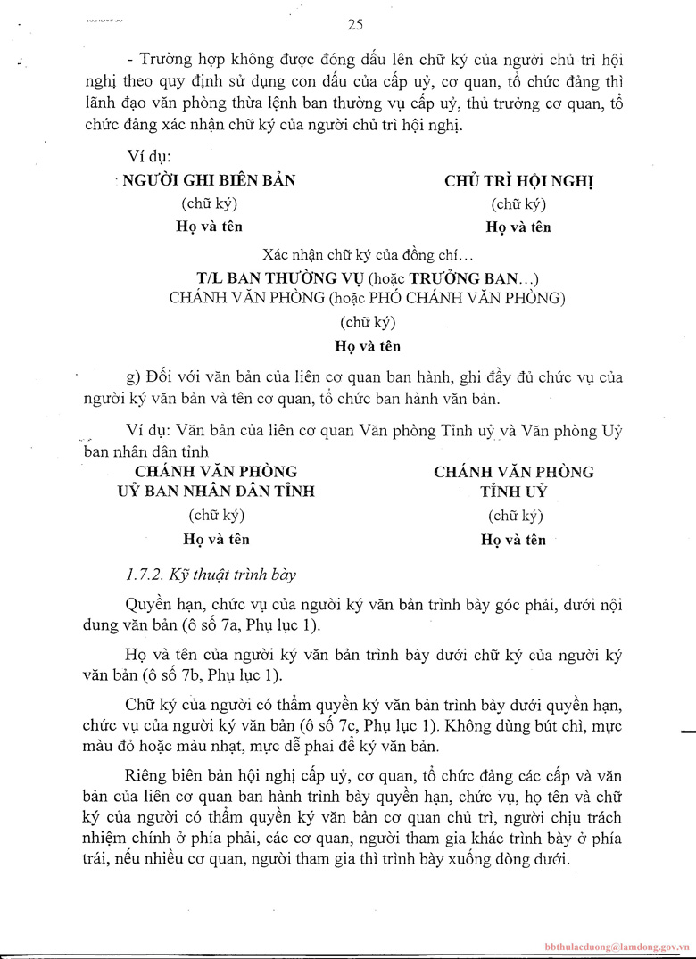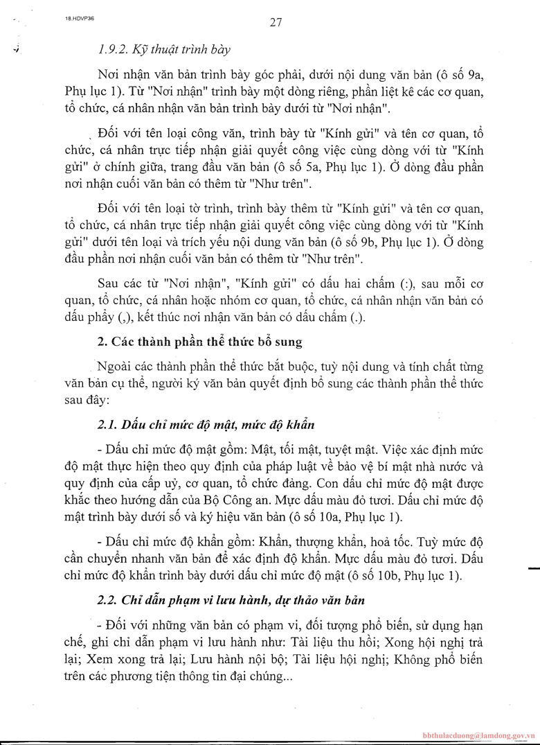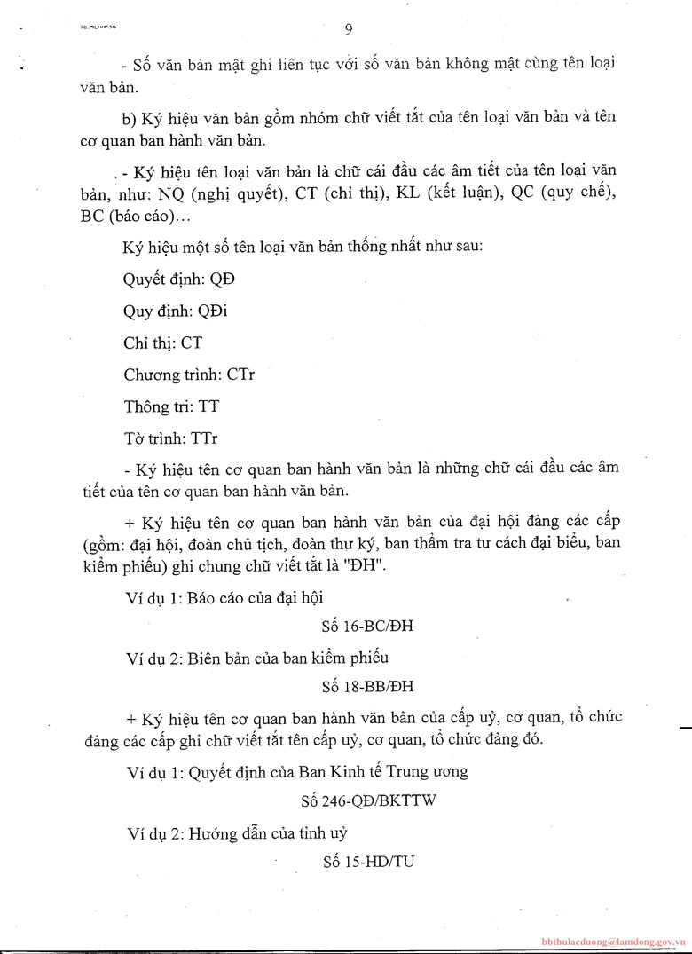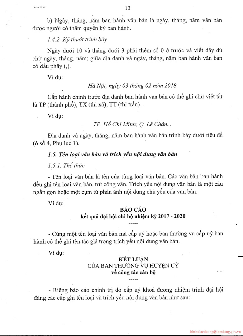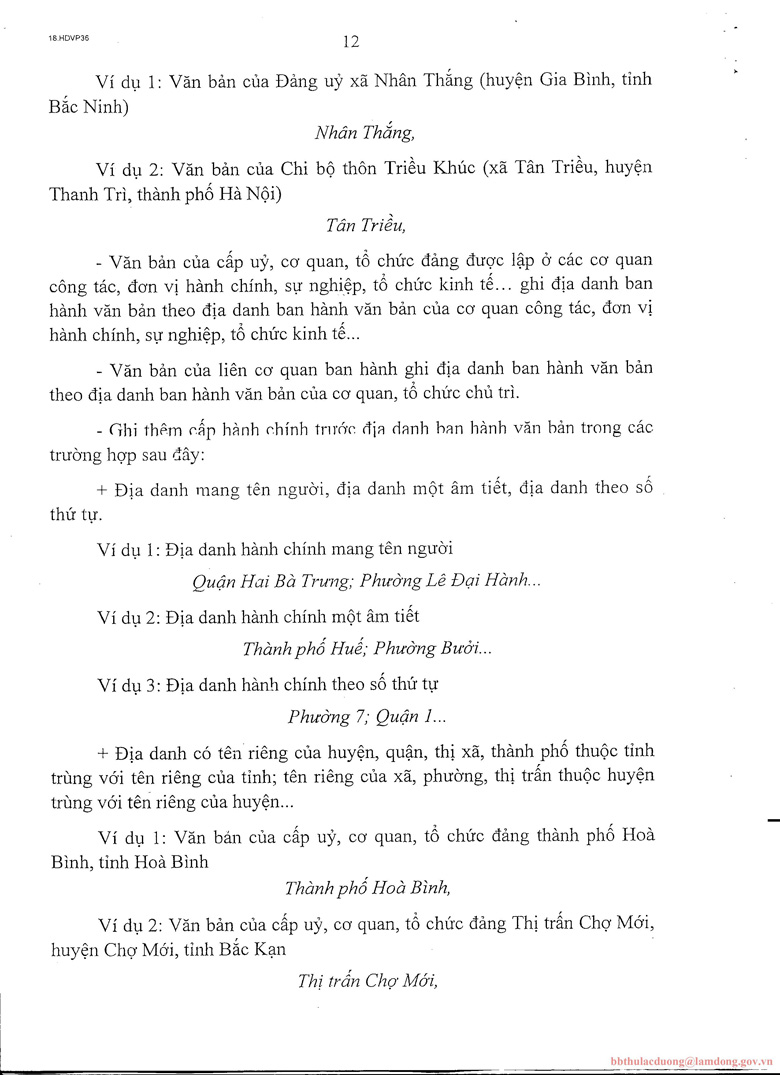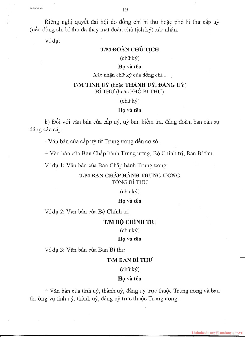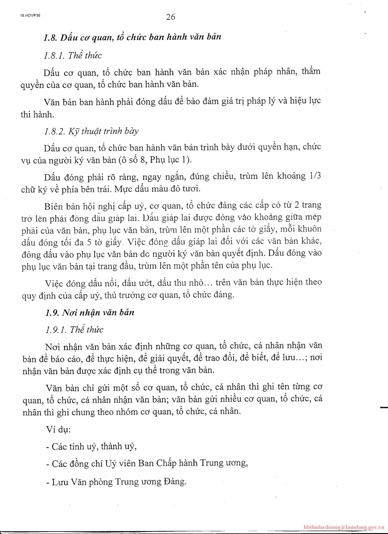Hướng dẫn 36 về thể thức và kỹ thuật trình bày văn bản của Đảng
