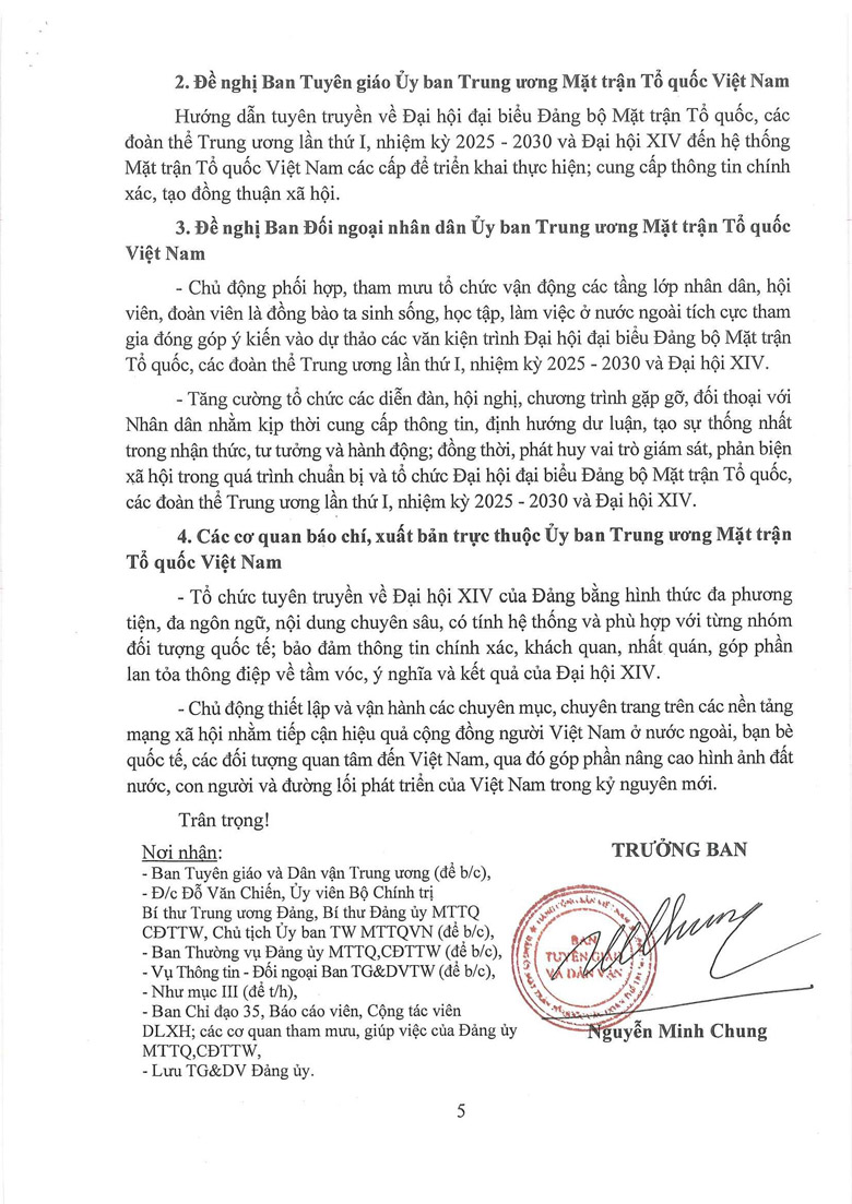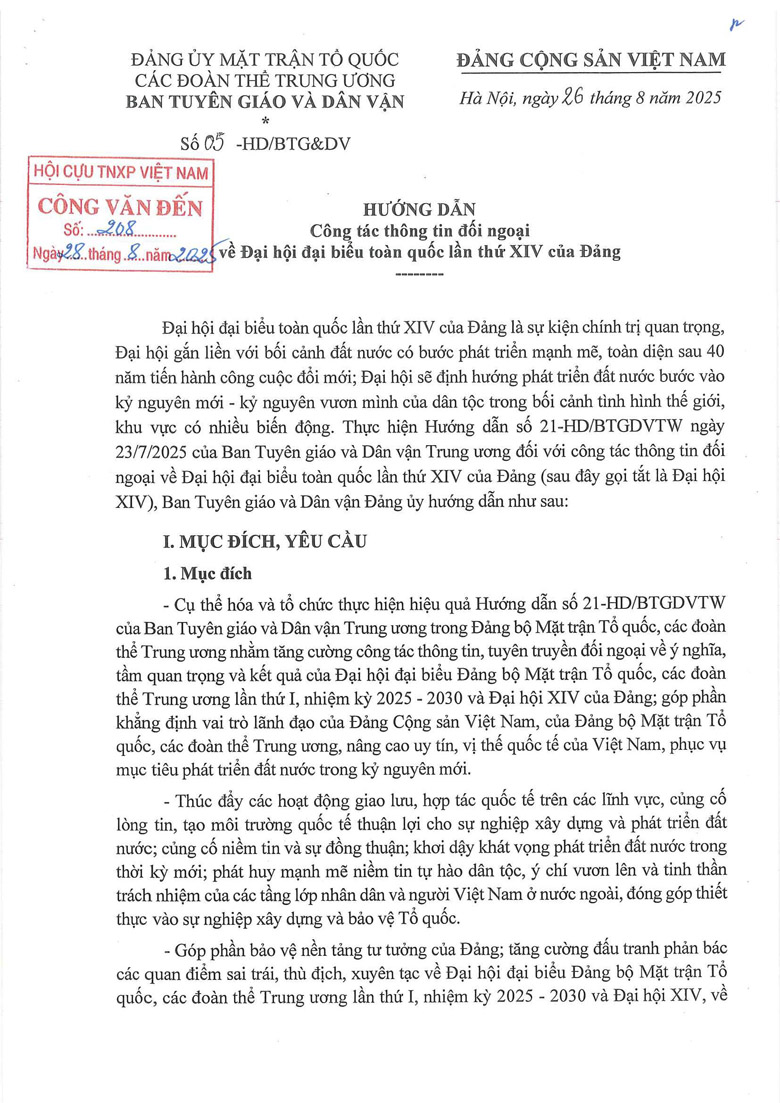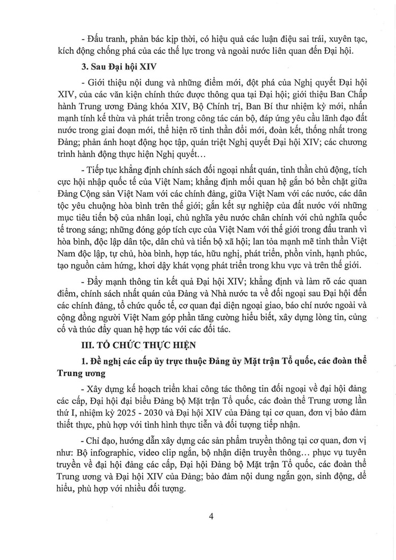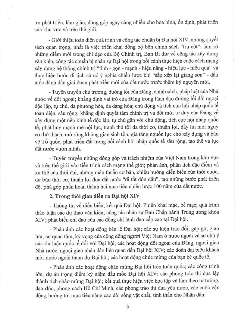 Hướng dẫn công tác thông tin đối ngoại về Đại hội đại biểu toàn quốc lần thứ XIV của Đảng