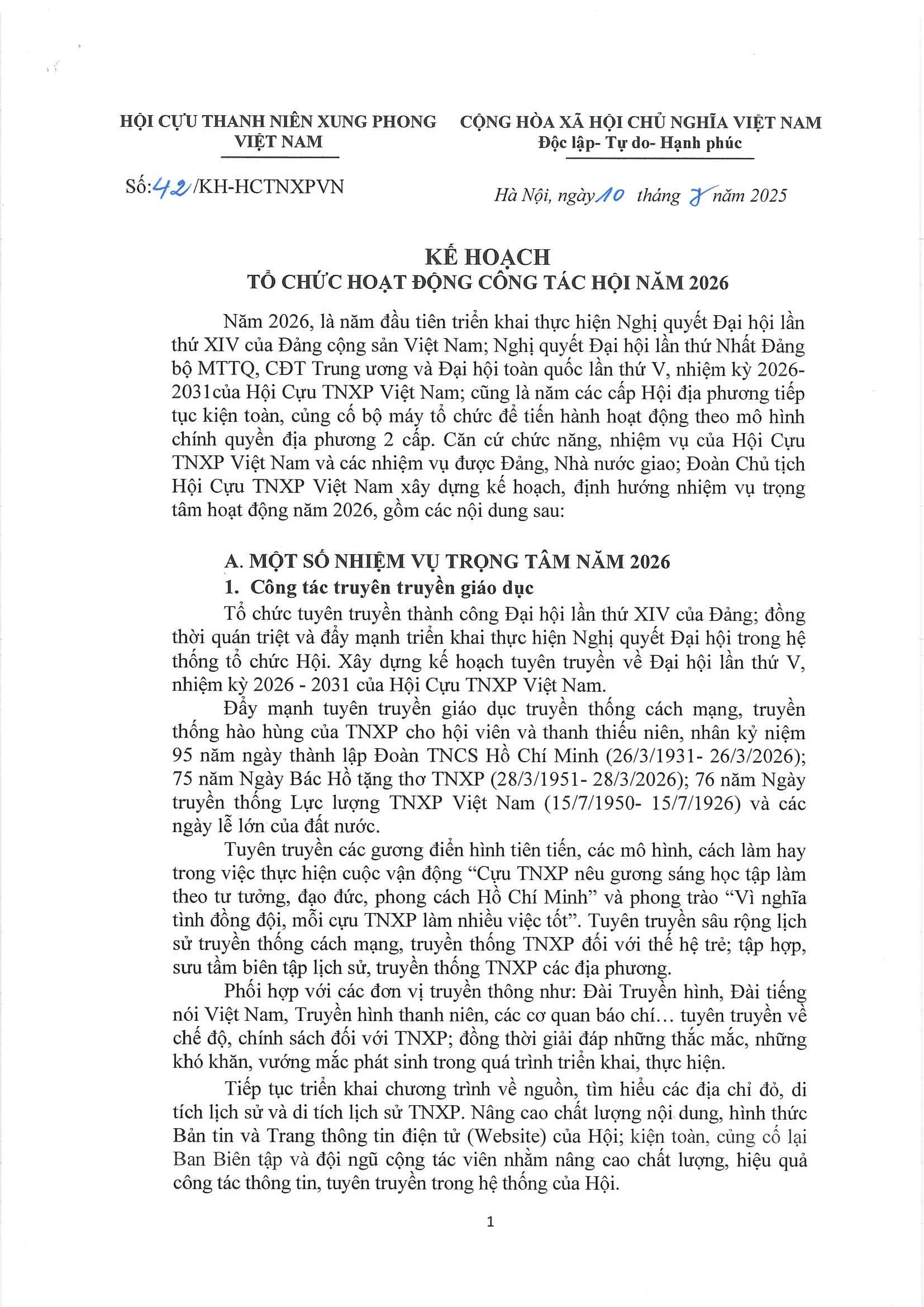 KẾ HOẠCH TỔ CHỨC HOẠT ĐỘNG CÔNG TÁC HỘI NĂM 2026