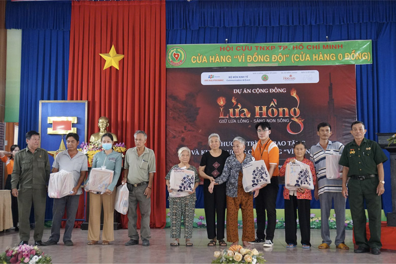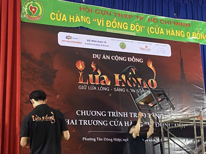 Điểm nhấn của chương trình là sự đồng hành của nhóm sinh viên lớp CE21201 – chuyên ngành Truyền thông và Tổ chức sự kiện (trường Cao đẳng FPT Polytechnic cơ sở TP.HCM). Từ thông tin về mục đích cao đẹp của Cửa hàng “Vì Đồng đội”, nhóm đã báo cáo giảng viên hướng dẫn Trần Hà Phương Thảo để xây dựng dự án cộng đồng mang tên “Lửa hồng”.