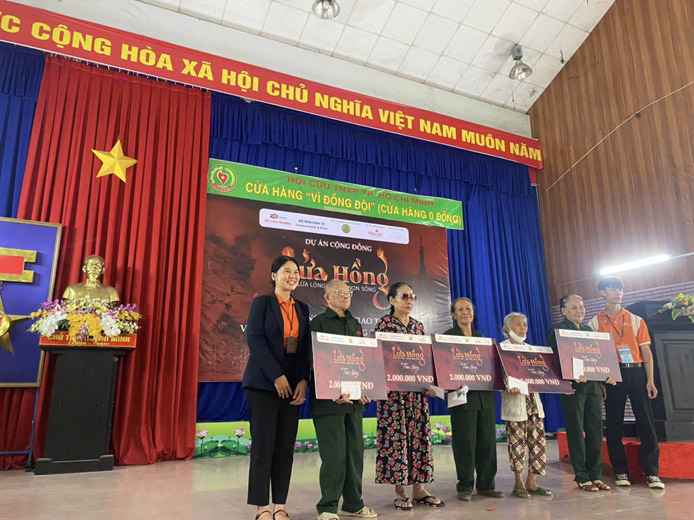 Các bạn sinh viên không chỉ hỗ trợ khâu tuyên truyền, quảng bá mà còn trực tiếp bắt tay vào việc trang trí, thiết kế kịch bản và vận hành sự kiện. Bên cạnh các phần quà sẵn có tại cửa hàng, nhóm đã vận động trao tặng 05 thẻ Bảo hiểm y tế cho cựu TNXP và người dân địa phương; cùng 05 phần quà đặc biệt cho cựu TNXP có hoàn cảnh đặc biệt khó khăn (mỗi phần quà gồm nhu yếu phẩm và tiền mặt trị giá 2 triệu đồng).