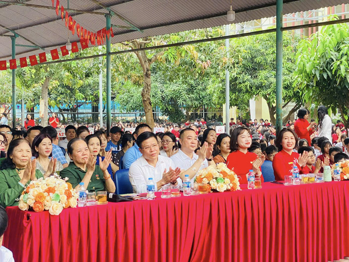 Đáp lại những tình cảm quý báu đó, cô Hiệu trưởng Trương Thị Mai Hương cùng đại diện phụ huynh học sinh đã phát biểu tri ân sâu sắc trước những đóng góp vô giá của thế hệ cha anh. Cô nhấn mạnh rằng, tinh thần thép của các cựu TNXP chính là tấm gương sáng nhất để các em học sinh soi mình, từ đó nỗ lực rèn đức, luyện tài.