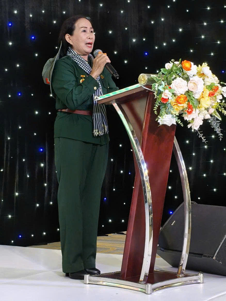 Bà Ngọc Vân – nguyên Phó Chủ tịch Hội Cựu TNXP TP Nha Trang trước đây, chủ nhiệm chương trình “Dấu ấn tuổi xuân tại Nha Trang” báo cáo kết quả thực hiện chương trình năm thứ 12,