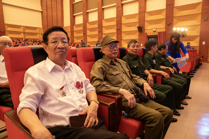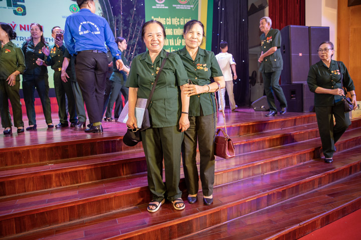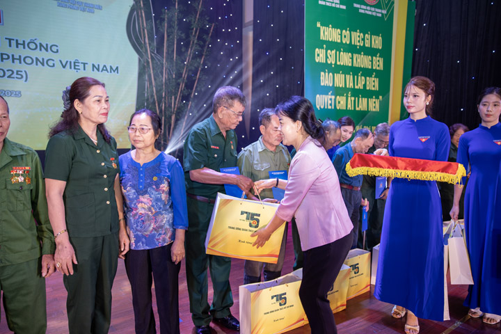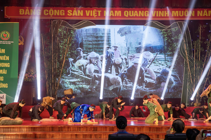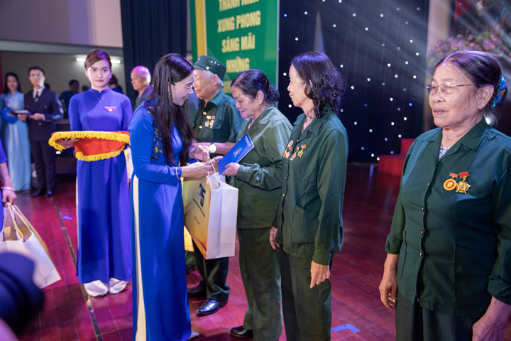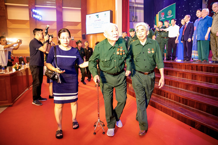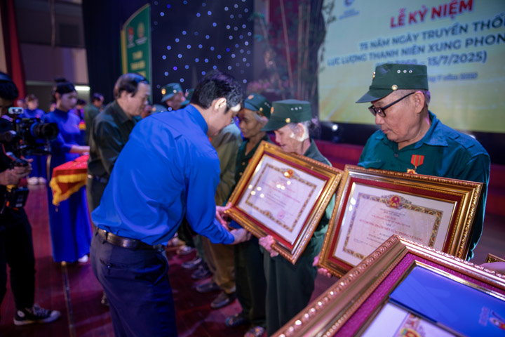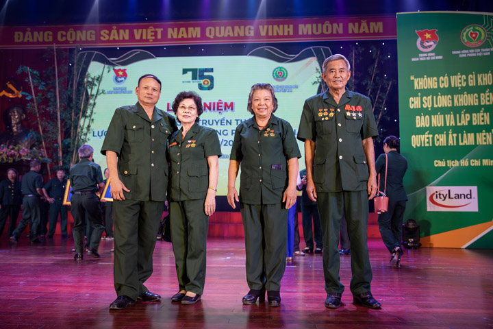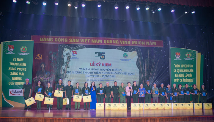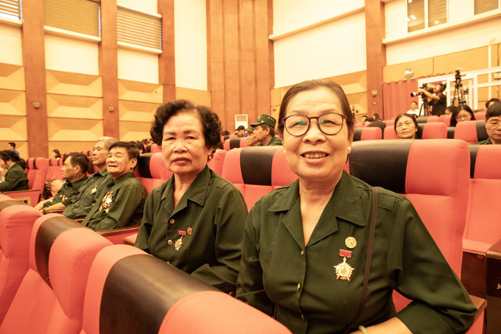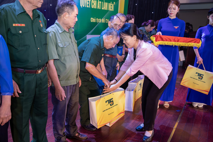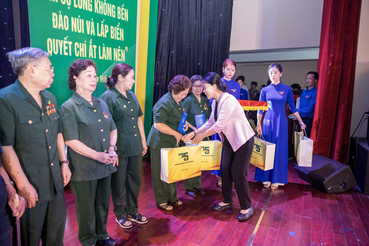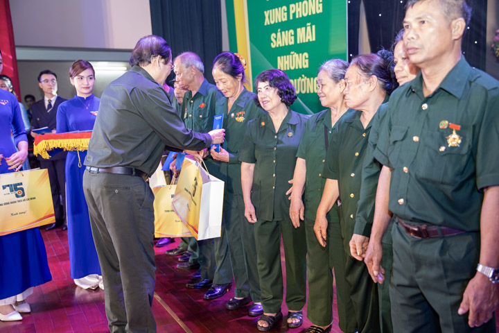 Cũng tại buổi lễ, Ban tổ chức đã trao “Huy chương Thanh niên xung phong vẻ vang” cho 22 cựu TNXP đến từ tỉnh Thanh Hóa (ảnh trên), đại diện cho hơn 1.600 cựu TNXP đã nhận được quyết định của Chủ tịch nước; trao tặng những phần quà thiết thực cho 50 cựu TNXP có hoàn cảnh khó khăn các tỉnh Hải Phòng, Ninh Bình, Phú Thọ, Bắc Ninh, Hà Nội, Hưng Yên (ảnh dưới).