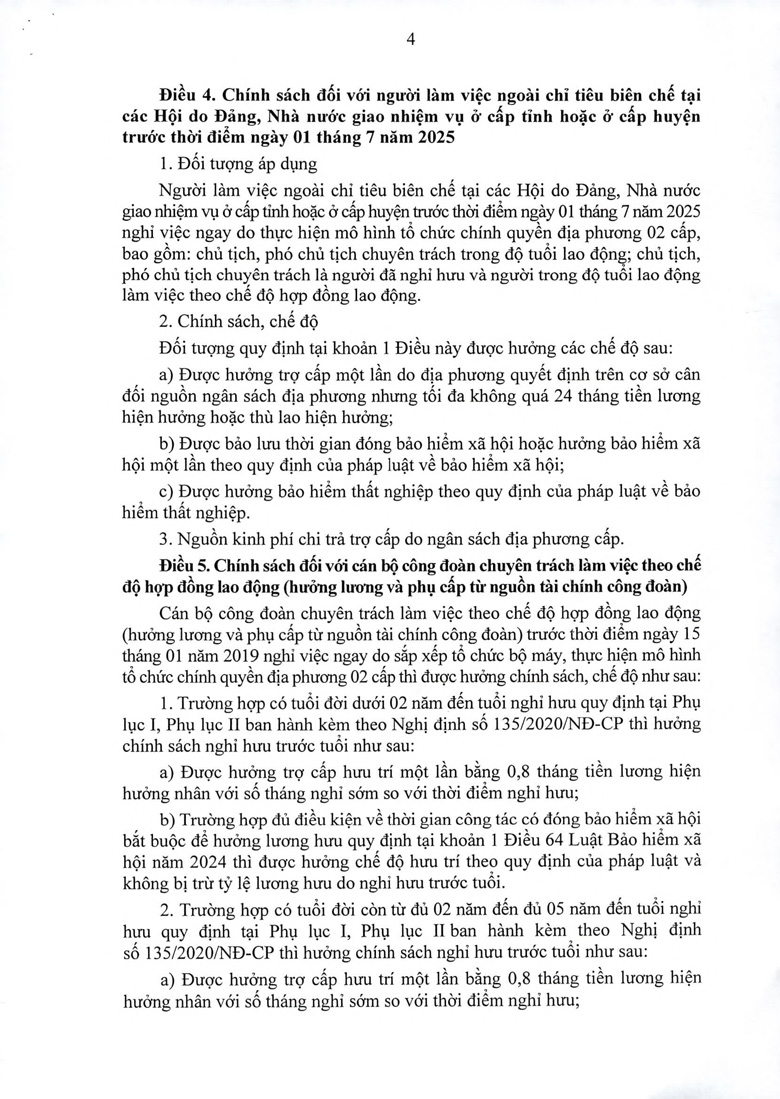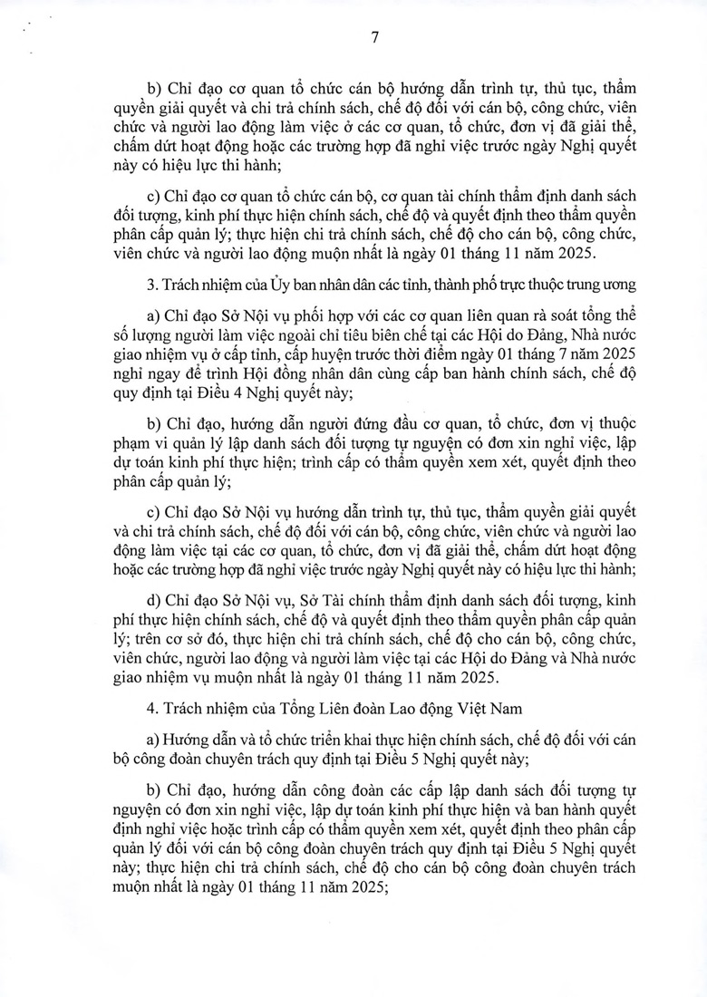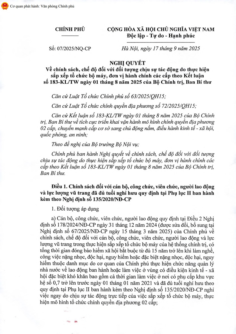 Nghị quyết 07 về chính sách, chế độ đối với đối tượng chịu sự tác động do thực hiện sắp xếp tổ chức bộ máy, đơn vị hành chính các cấp