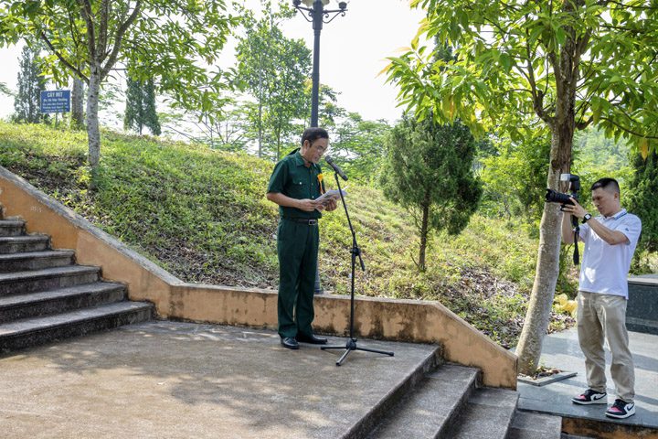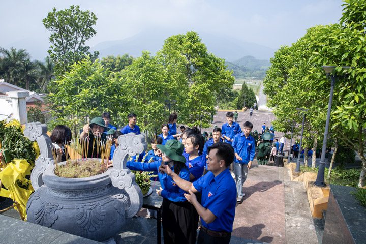 Đoàn đại biểu cũng đã đến Khu di tích lịch sử quốc gia 60 TNXP Đại đội 915 để dâng hương, dâng hoa, nghe thuyết minh, tham quan và chụp ảnh lưu niệm. Đây là “địa chỉ đỏ” ghi dấu sự hy sinh anh dũng của 60 TNXP khi làm nhiệm vụ tại ga Lưu Xá năm 1972, là nơi giáo dục truyền thống cách mạng cho thế hệ trẻ hôm nay.