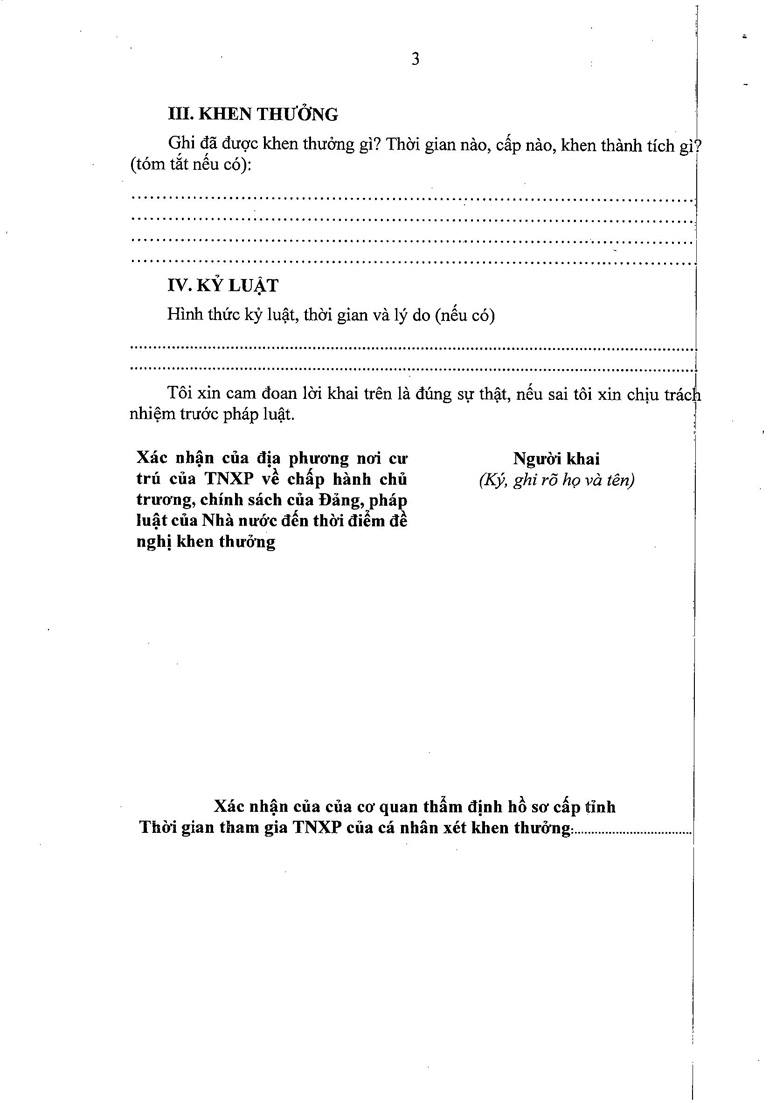- Bản khai cá nhân: Theo mẫu quy định, nêu rõ quá trình công tác và phiên hiệu đơn vị.