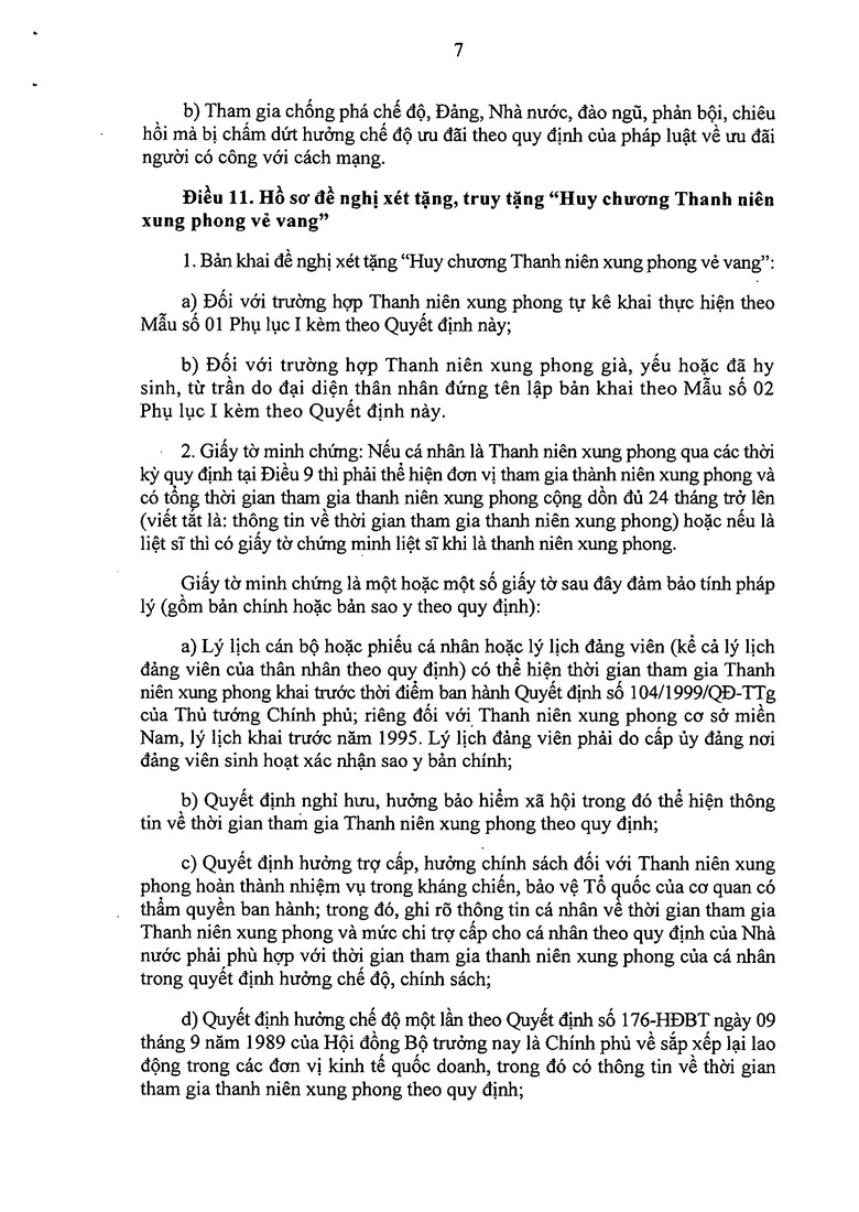 - Đối với Liệt sĩ: Cần có bản sao y Bằng Tổ quốc ghi công hoặc trích lục hồ sơ liệt sĩ thể hiện rõ cá nhân hy sinh khi đang là TNXP.
