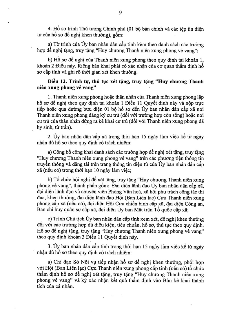 - Cấp Xã – Cấp cơ sở: Đây là mắt xích quan trọng nhất. UBND cấp xã tại nơi TNXP đăng ký cư trú (hoặc nơi cư trú của thân nhân đối với liệt sĩ) có trách nhiệm tiếp nhận hồ sơ, sau đó thực hiện niêm yết công khai danh sách tại trụ sở và trên các phương tiện thông tin đại chúng trong thời gian 10 ngày làm việc. Việc này cho phép nhân dân và các đồng đội cũ cùng giám sát, tránh trường hợp khai gian hoặc nhầm lẫn. Sau đó, một hội nghị xét tặng chính thức sẽ được tổ chức với sự tham gia của các tổ chức đoàn thể.