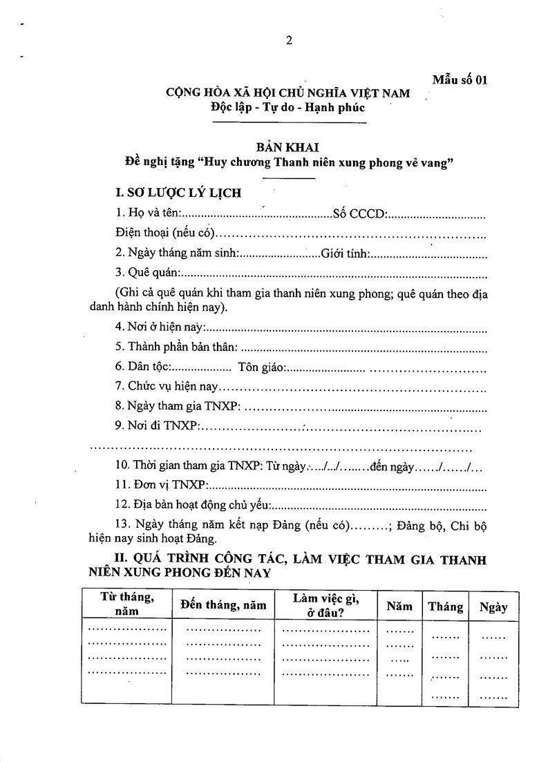- Bản khai cá nhân: Theo mẫu quy định, nêu rõ quá trình công tác và phiên hiệu đơn vị.
