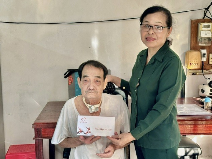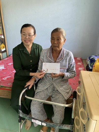 2. Trực tiếp tại gia đình: Với tâm niệm “không để ai bị bỏ lại phía sau”, đồng chí Trần Thị Hiến – Phó Chủ tịch Hội Cựu TNXP TP. Cần Thơ – đã trực tiếp đến thăm hỏi, trao quà tận tay cho những hội viên tuổi cao sức yếu, đi lại khó khăn (ảnh dưới).