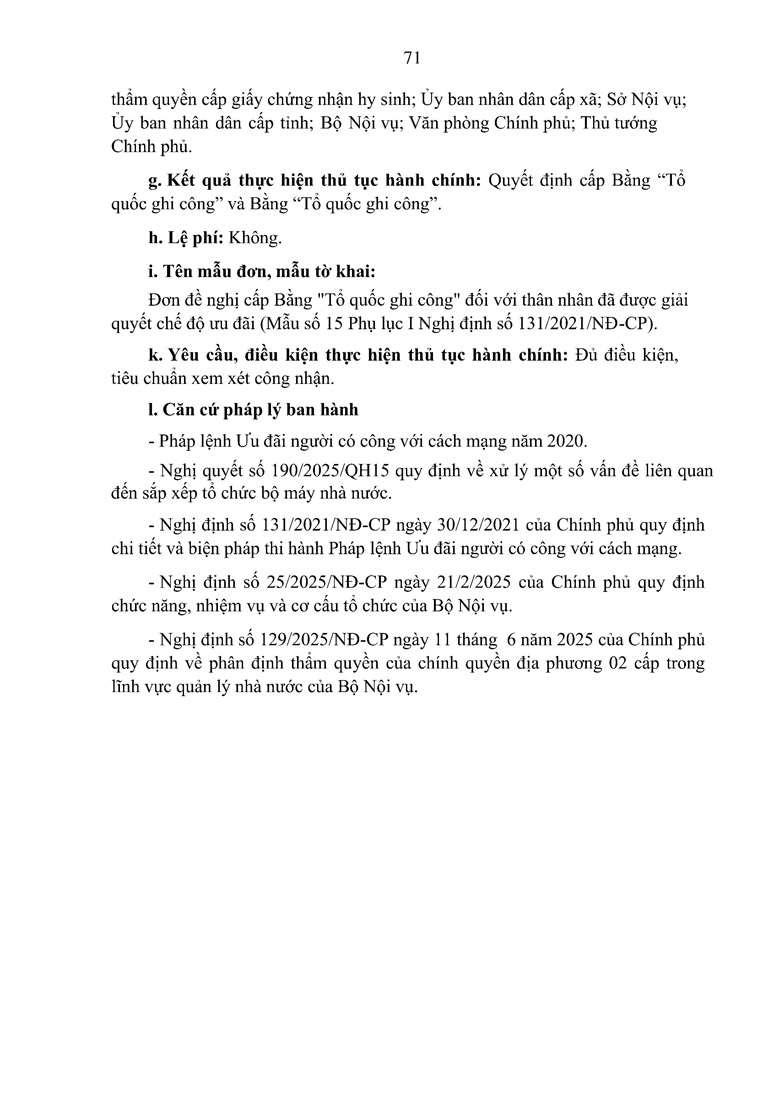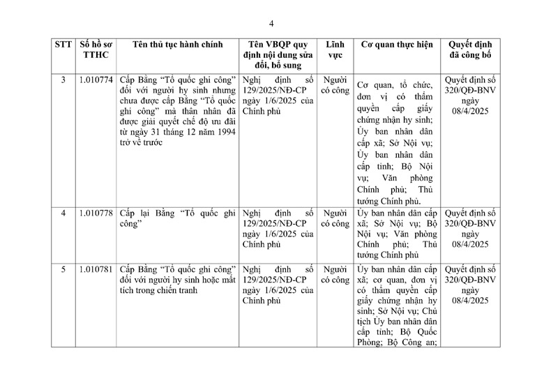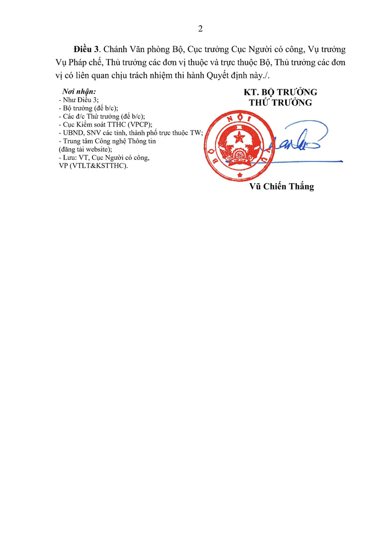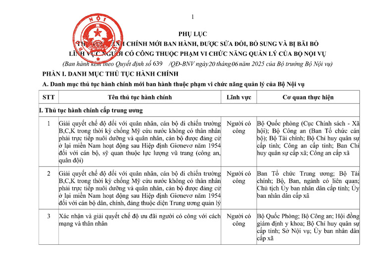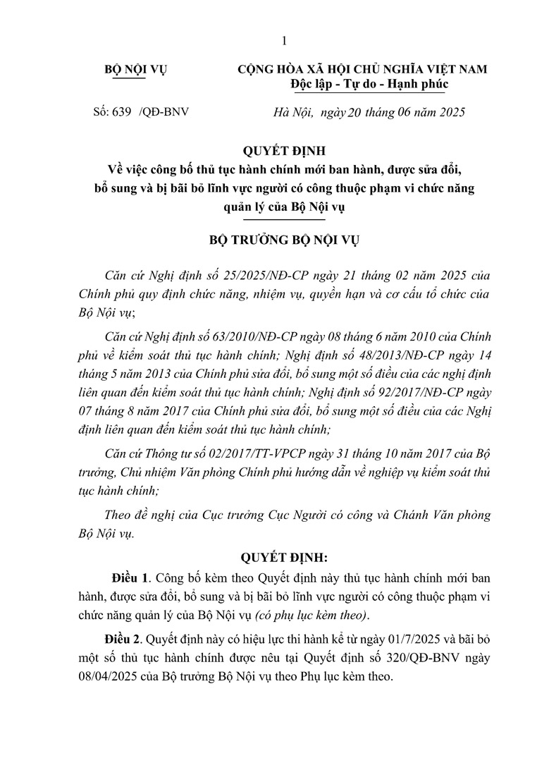 Quyết định 639 công bố thủ tục hành chính mới ban hành, được sửa đổi, bổ sung và bị bãi bỏ lĩnh vực người có công thuộc phạm vi chức năng quản lý của Bộ Nội vụ