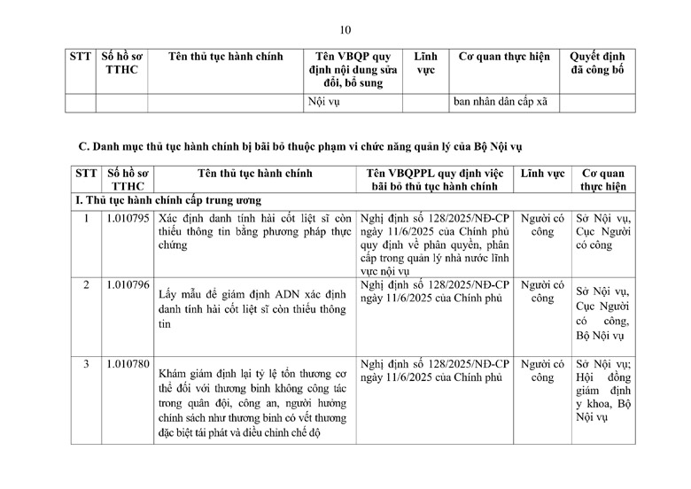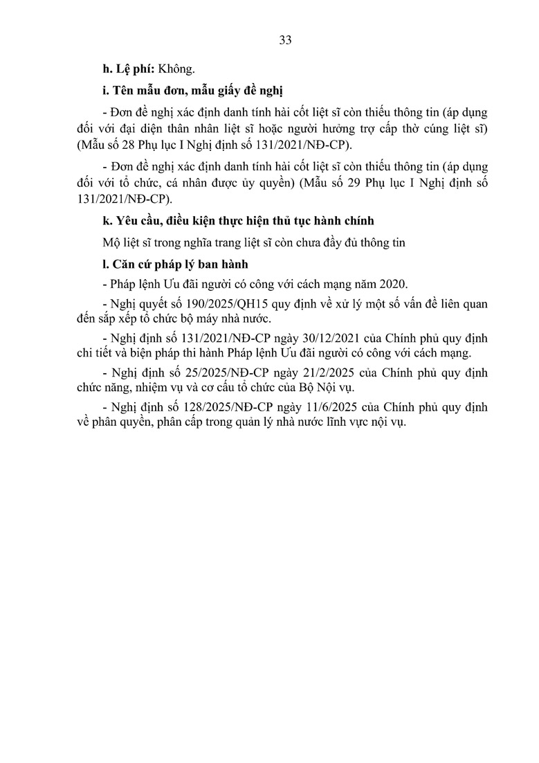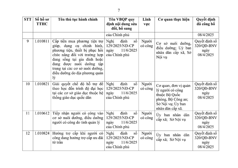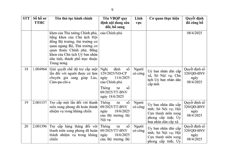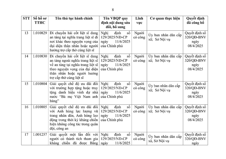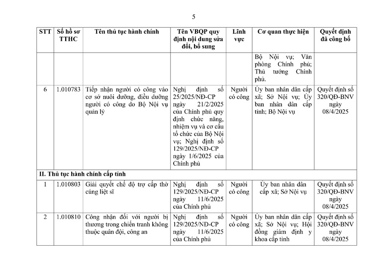 Quyết định 639 công bố thủ tục hành chính mới ban hành, được sửa đổi, bổ sung và bị bãi bỏ lĩnh vực người có công thuộc phạm vi chức năng quản lý của Bộ Nội vụ