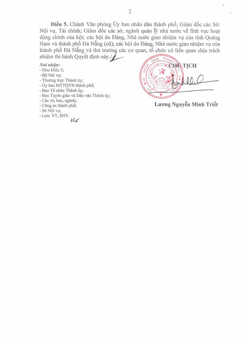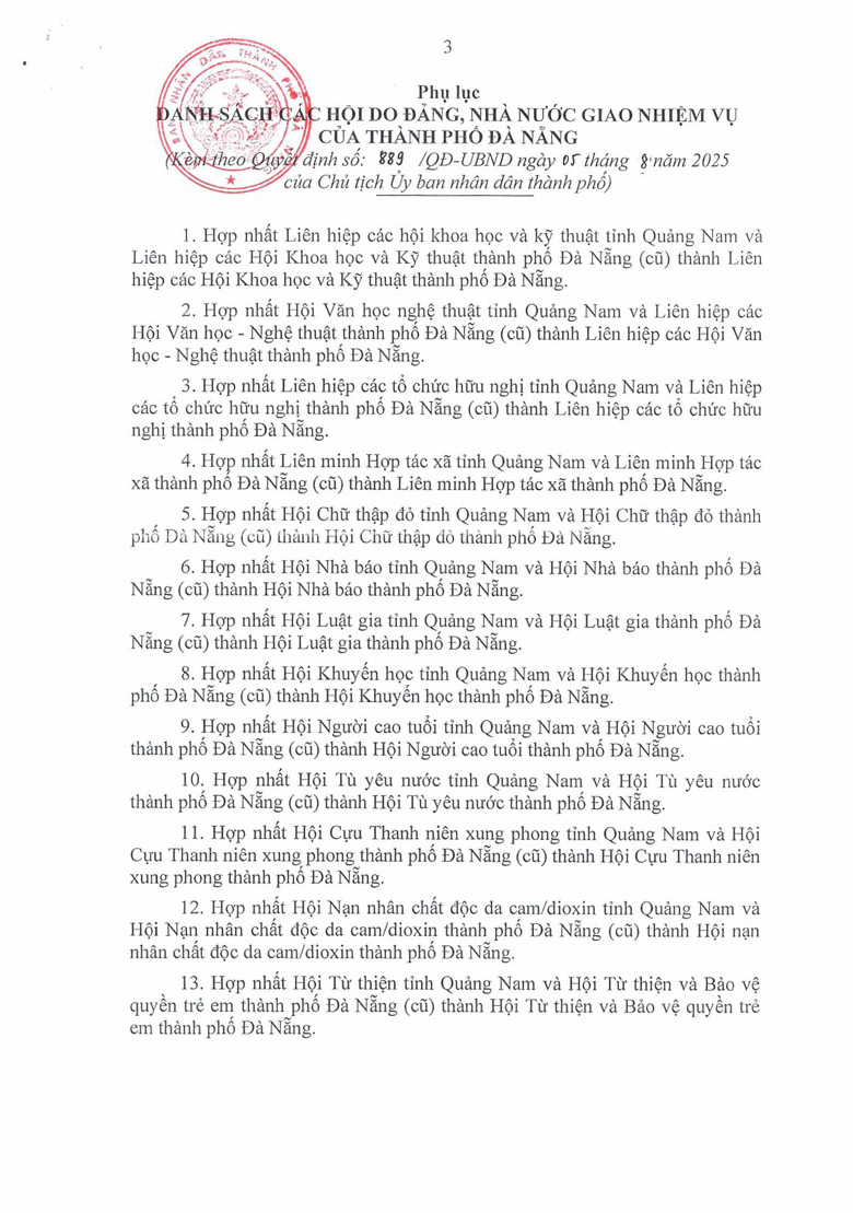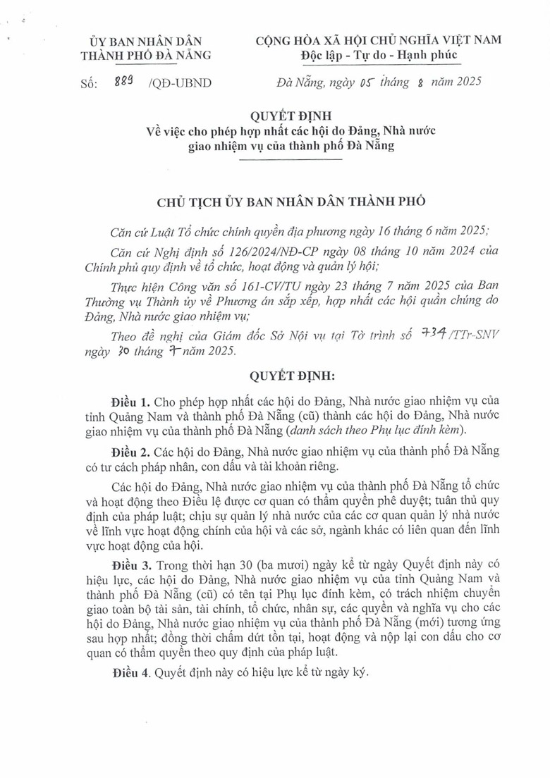 Quyết định cho phép hợp nhất các hội do Đảng, Nhà nước giao nhiệm vụ của thành phố Đà Nẵng