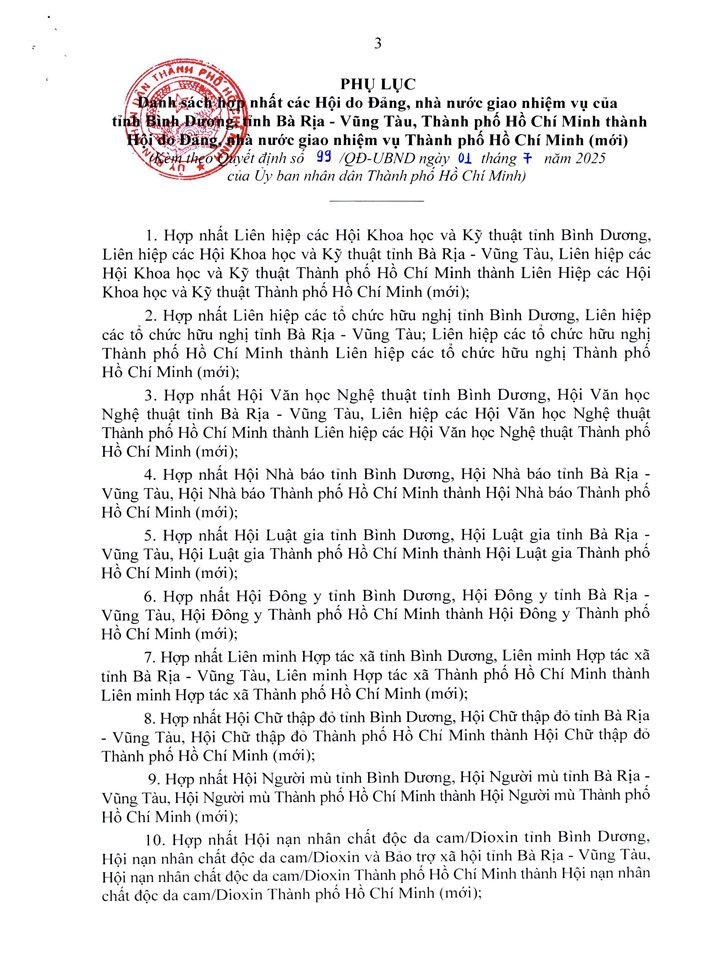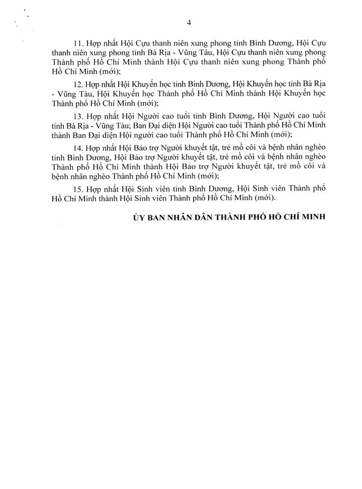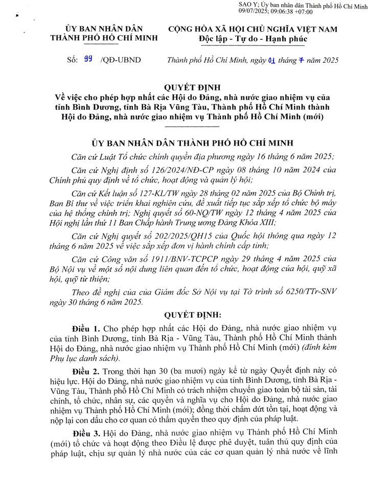 Quyết định cho phép hợp nhất các Hội do Đảng, nhà nước giao nhiệm vụ của tỉnh Bình Dương, tĩnh Bà Rịa Vũng Tàu, Thành phố Hồ Chí Minh thành Hội do Đảng, nhà nưóc giao nhiệm vụ Thành phố Hồ Chí Minh (mới)