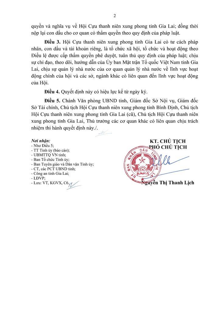 Quyết định cho phép hợp nhất Hội Cựu TNXP hai tỉnh Bình Định và Gia Lai (cũ) thành Hội Cựu TNXP tỉnh Gia Lai