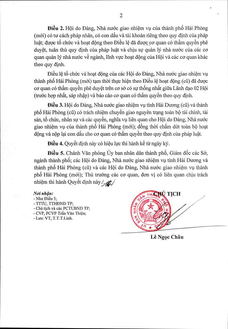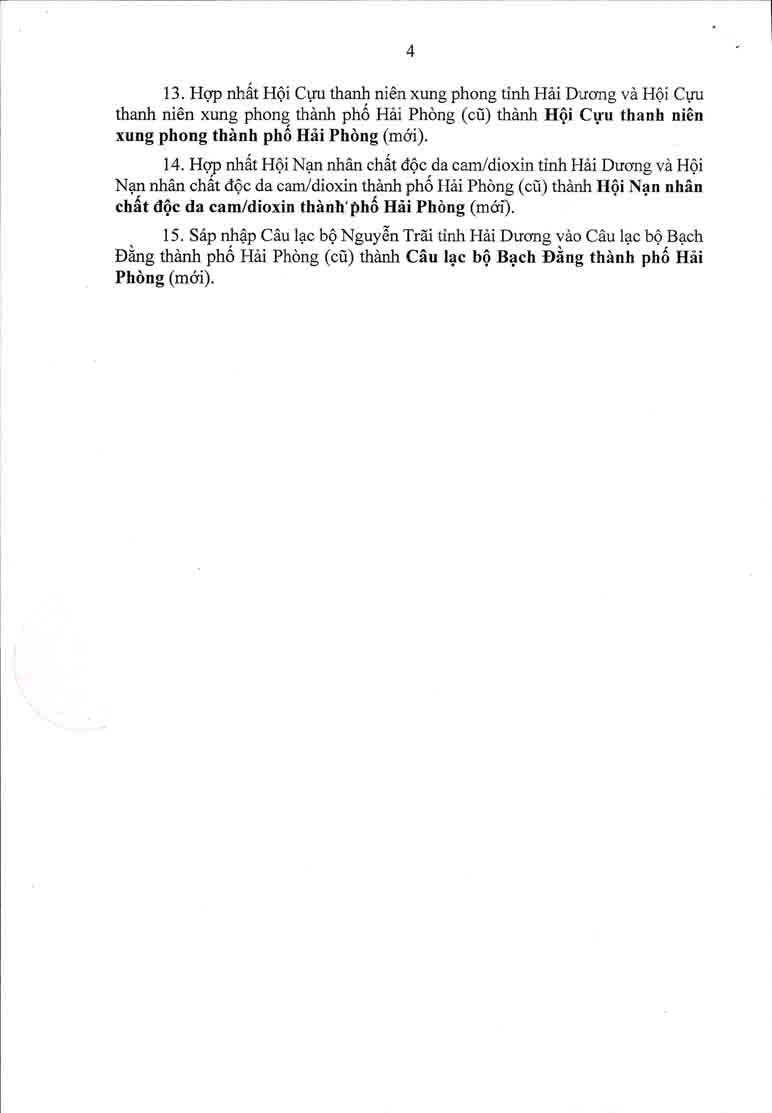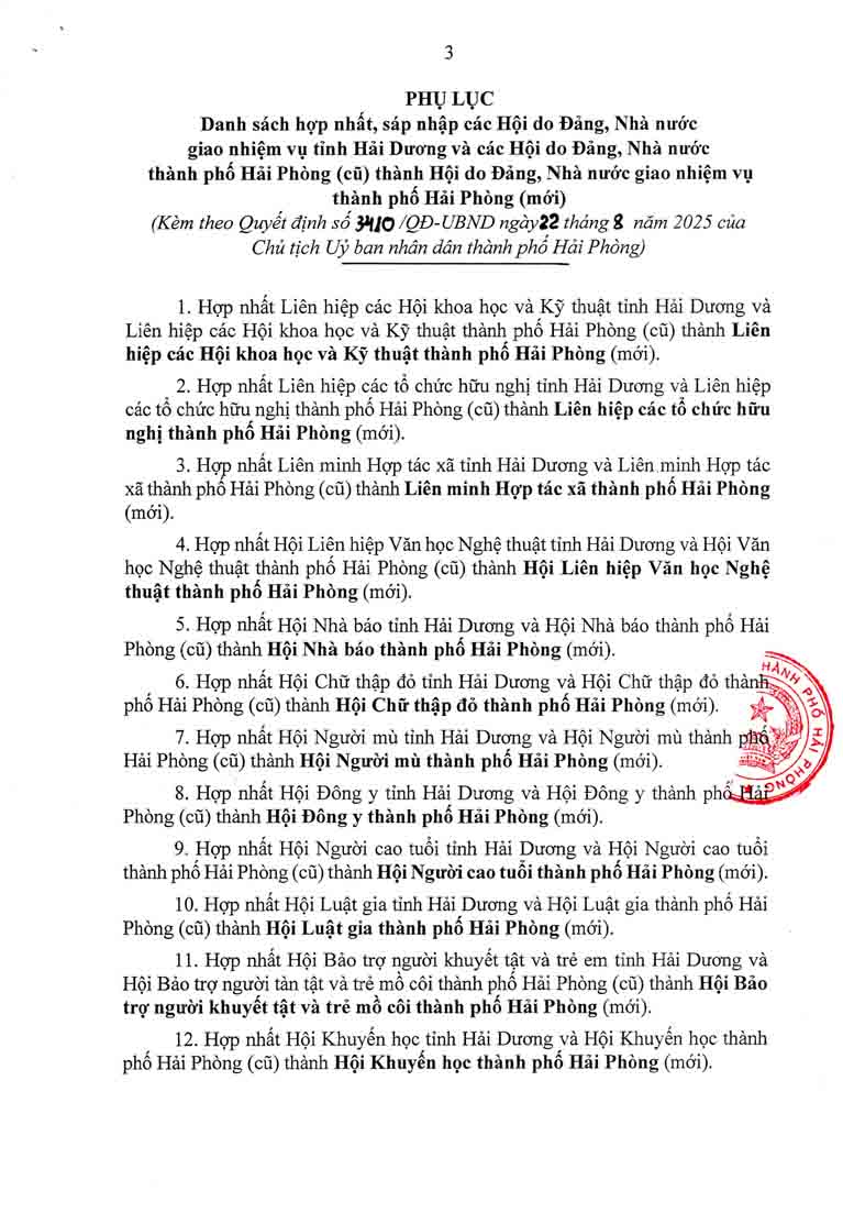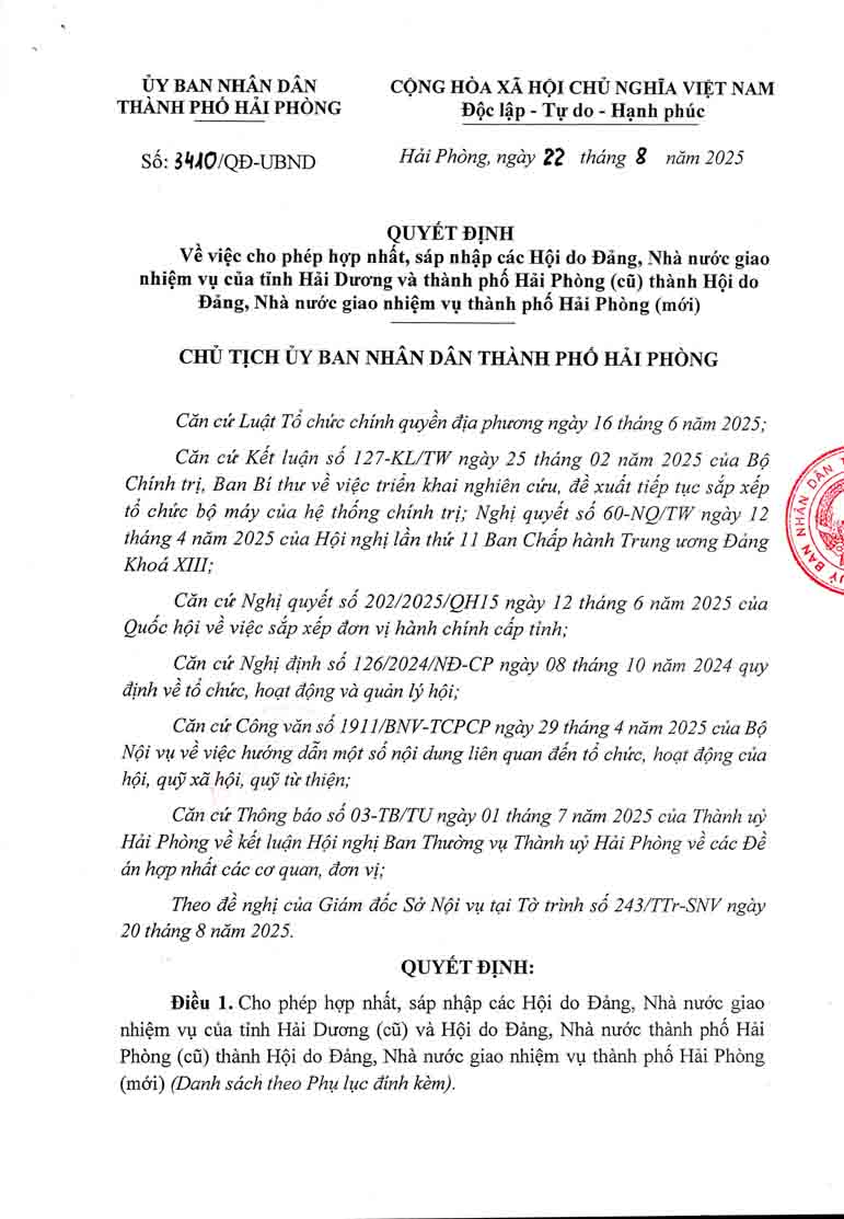 Quyết định cho phép hợp nhất, sáp nhập các Hội do Đảng, Nhà nướcc giao nhiệm vụ của tỉnh Hải Dương và thành phố Hải Phòng (cũ) thành Hội do Đảng, Nhà nước giao nhiệm vụ thành phố Hải Phòng (mới)