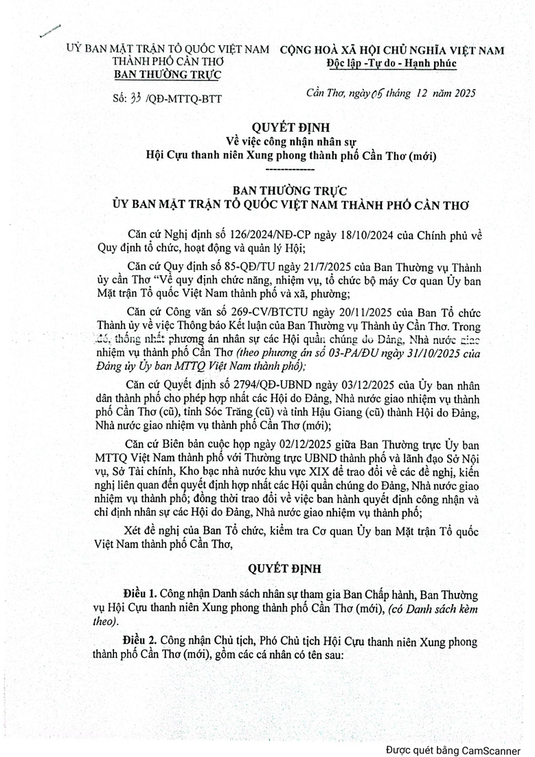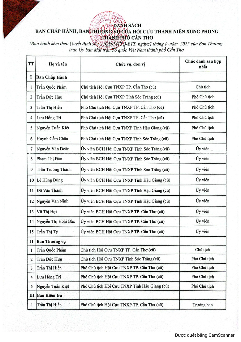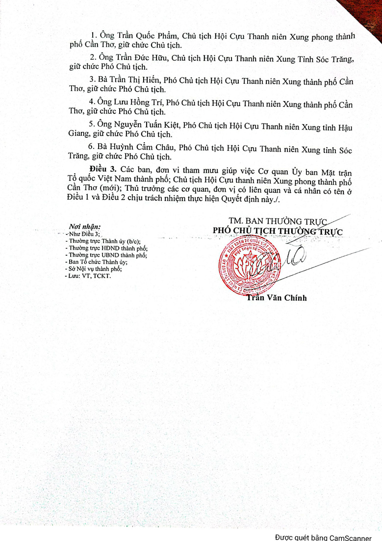 - Quyết định 2794 hợp nhất các Hội do Đảng, Nhà nước giao nhiệm vụ thành phố cần Thơ (cũ), tỉnh Sóc Trăng (cũ) và tỉnh Hậu Giang (cũ) thành Hội do Đảng, Nhà nước giao nhiệm vụ thành phố Cần Thơ (mới)