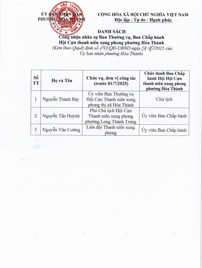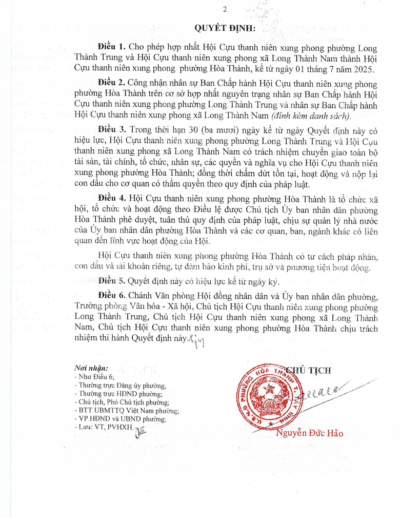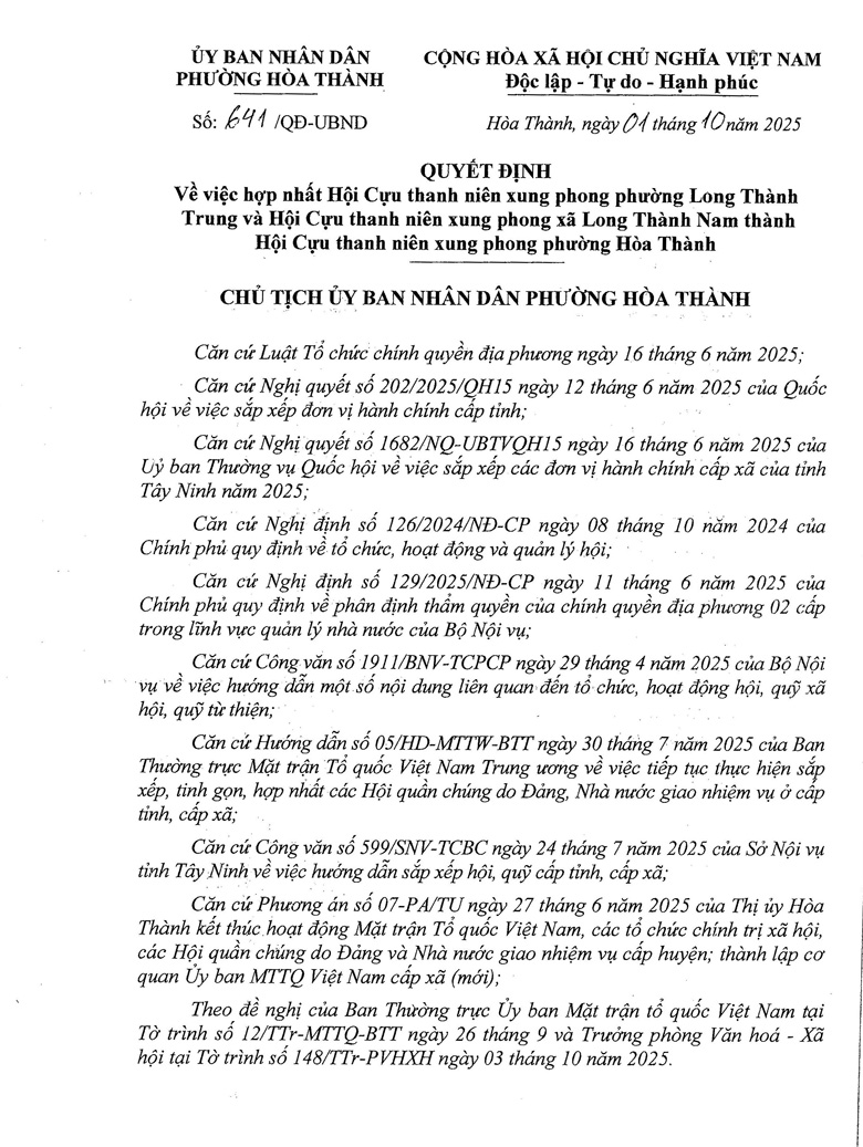 - Quyết định 4956 công nhận Ban Chấp hành lâm thời Hội Cựu TNXP phường Đồng Hới