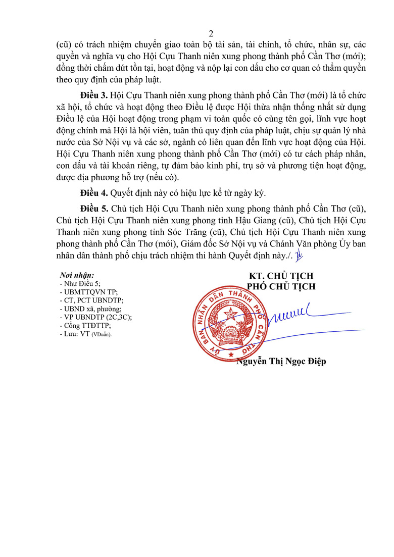 Quyết định hợp nhất Hội Cựu TNXP thành phố Cần Thơ (cũ), Hội Cựu TNXP tỉnh Hậu Giang (cũ), Hội Cựu TNXP tỉnh Sóc Trăng (cũ) thành Hội Cựu Thanh niên xung phong thành phố Cần Thơ (mới)