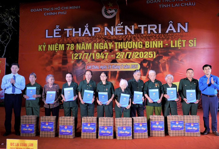 Tối ngày 25 tháng 7 năm 2025, tại Nghĩa trang Liệt sĩ tỉnh Lai Châu, Lễ thắp nến tri ân các anh hùng liệt sĩ đã được tổ chức trọng thể nhân dịp kỷ niệm 78 năm ngày Thương binh – Liệt sĩ (27/7). Sự kiện do Đoàn Thanh niên Chính phủ phối hợp cùng Tỉnh đoàn Lai Châu tổ chức, thu hút đông đảo các đại biểu, đoàn viên thanh niên và nhân dân tham dự.
