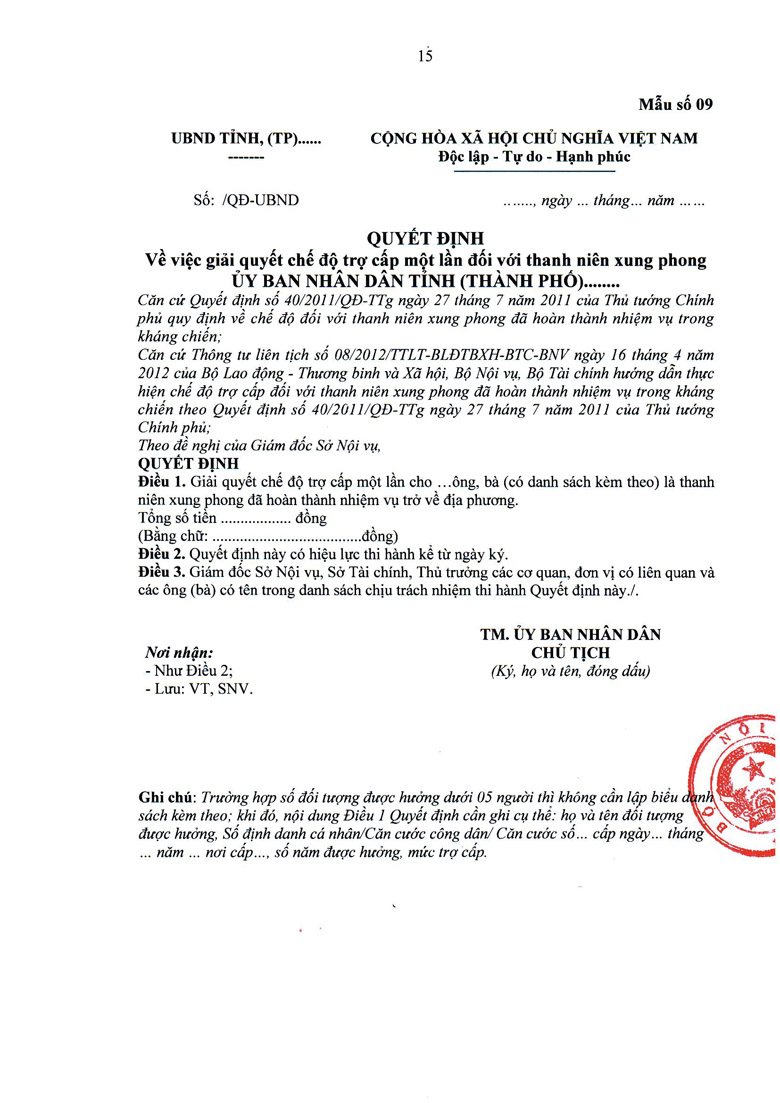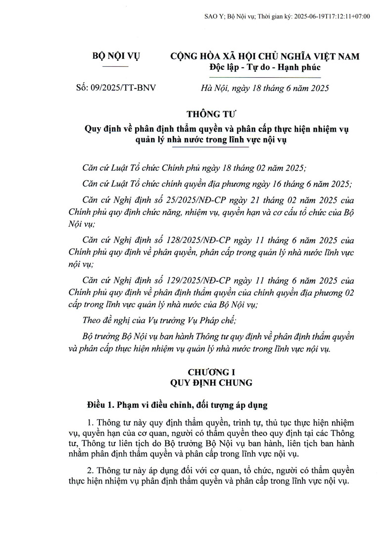 Thông tư 09 quy định về phân định thẩm quyền và phân cấp thực hiện nhiệm vụ quản lý nhà nước trong lĩnh vực nội vụ