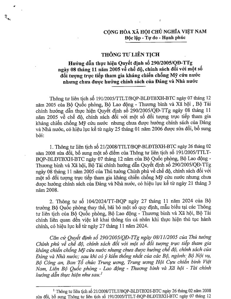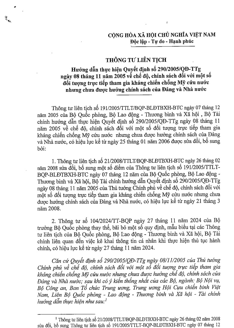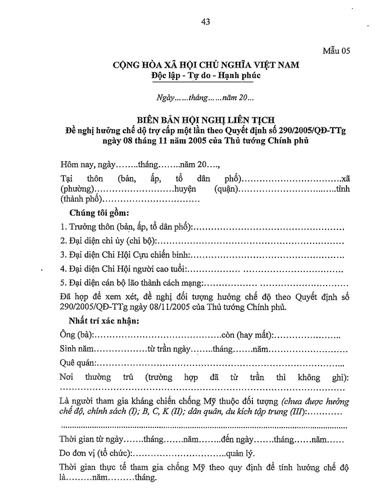 Thông tư liên tịch hướng dẫn thực hiện Quyết định số 290/2005/ỌĐ-TTg ngày 08 tháng 11 năm 2005 Download văn bản: F Chia sẻ Tweet