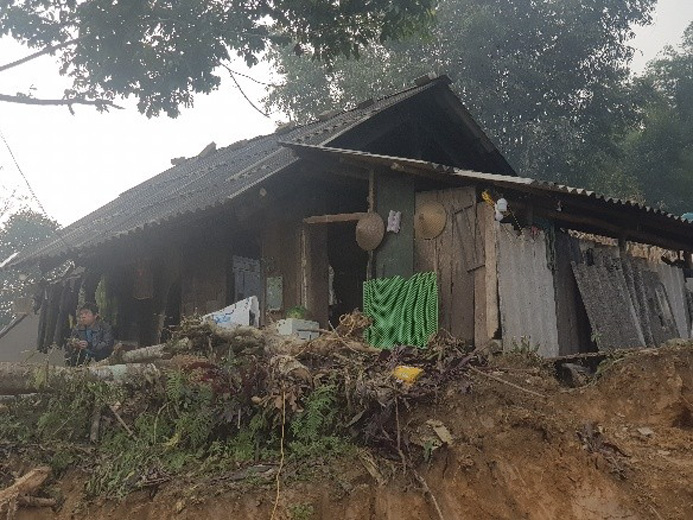 Hình ảnh nhà đang ở (trái) và lễ khởi công.